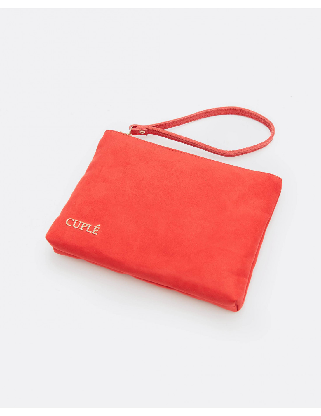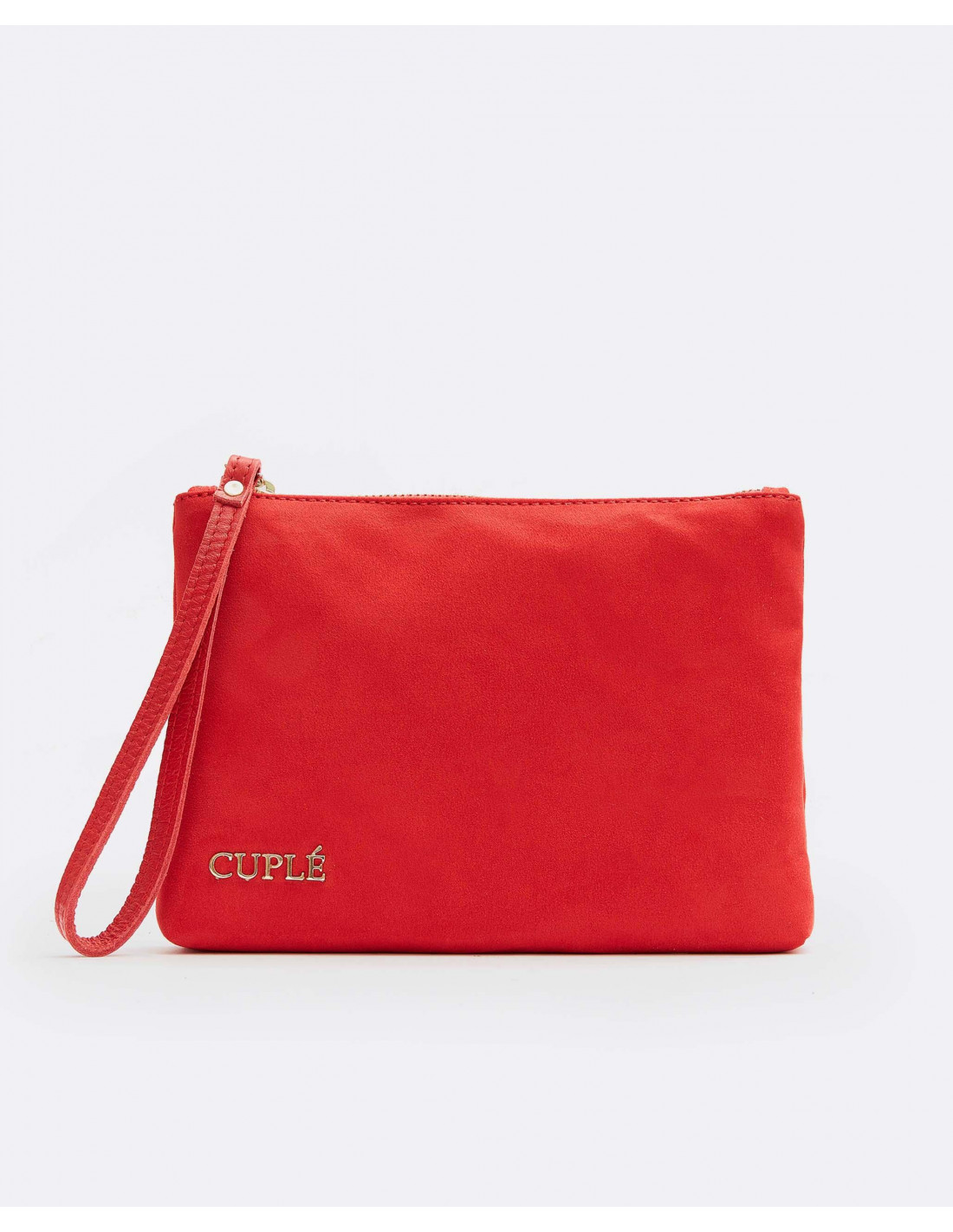 Nuestra cartera de mano ultrasuede de color rojo es ideal para cualquier ocasión, con forro fucsia y bolsillo interior, cierre mediente cremallera y correa color rojo.