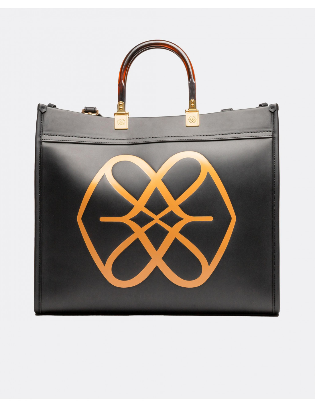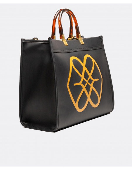 Bolso shopping grande con logotipo de la marca estampado. Presenta doble asas cortas de carey. Correa extraible para poder colgarlo en el hombro o como bandolera.