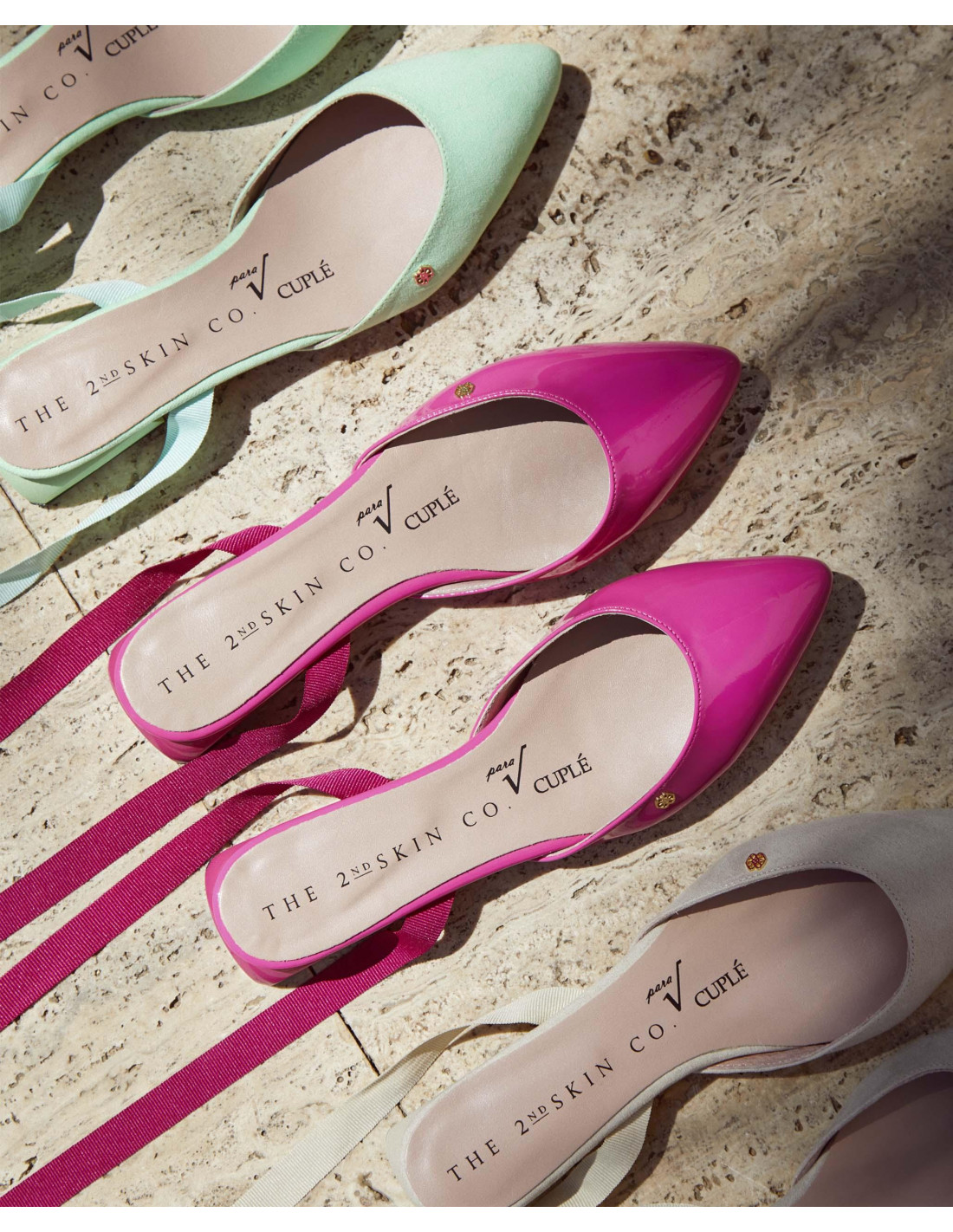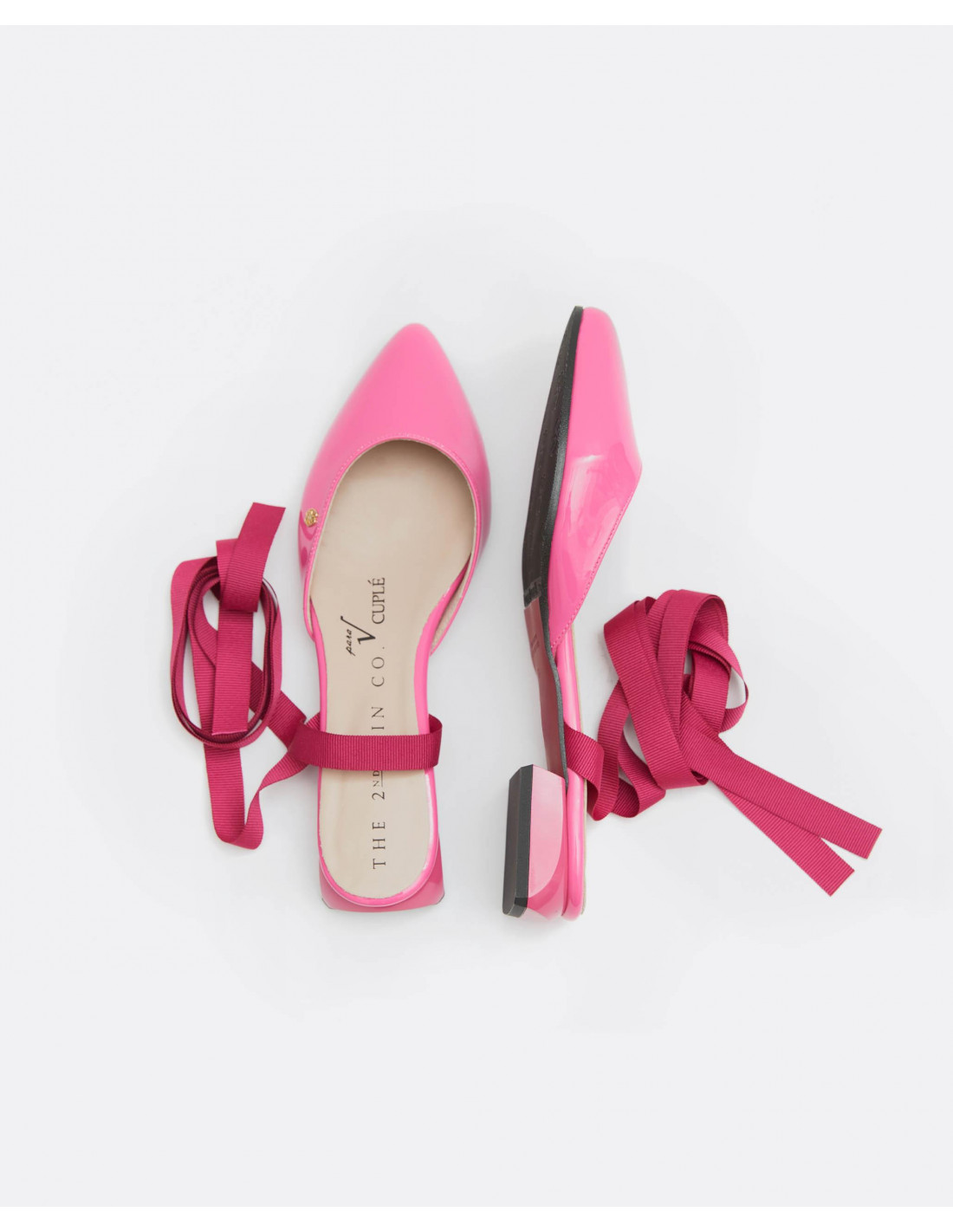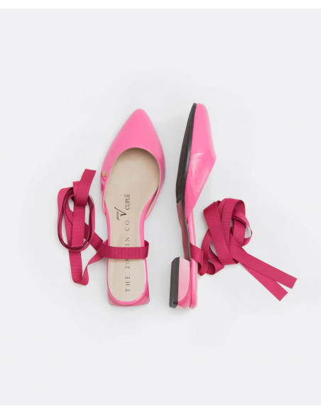 Descubre nuestros mules de charol color fucsia en colaboración con THE 2ND SKIN. Se atan en la pierna mediante una lazada para terminar de dar un aire sofisticado y diferente a tu look. Esta colaboración se define por sus colores veraniegos, su elegancia y sus materiales.