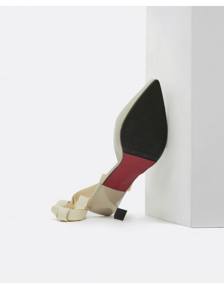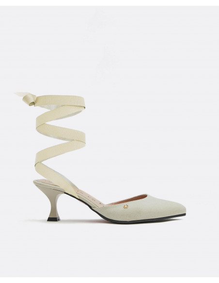 Descubre nuestros salones destalonados de ultrasuede color beige en colaboración con THE 2ND SKIN. Con un tacón medio se atan en la pierna con una lazada para terminar de dar un aire sofisticado y diferente a tu look. Esta colaboración se define por sus colores veraniegos, su elegancia y sus materiales.