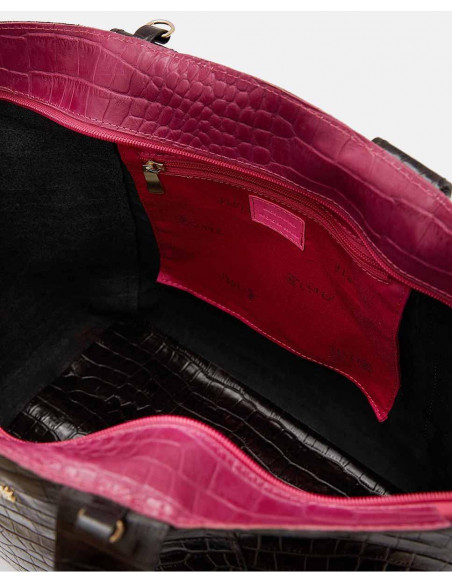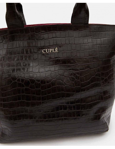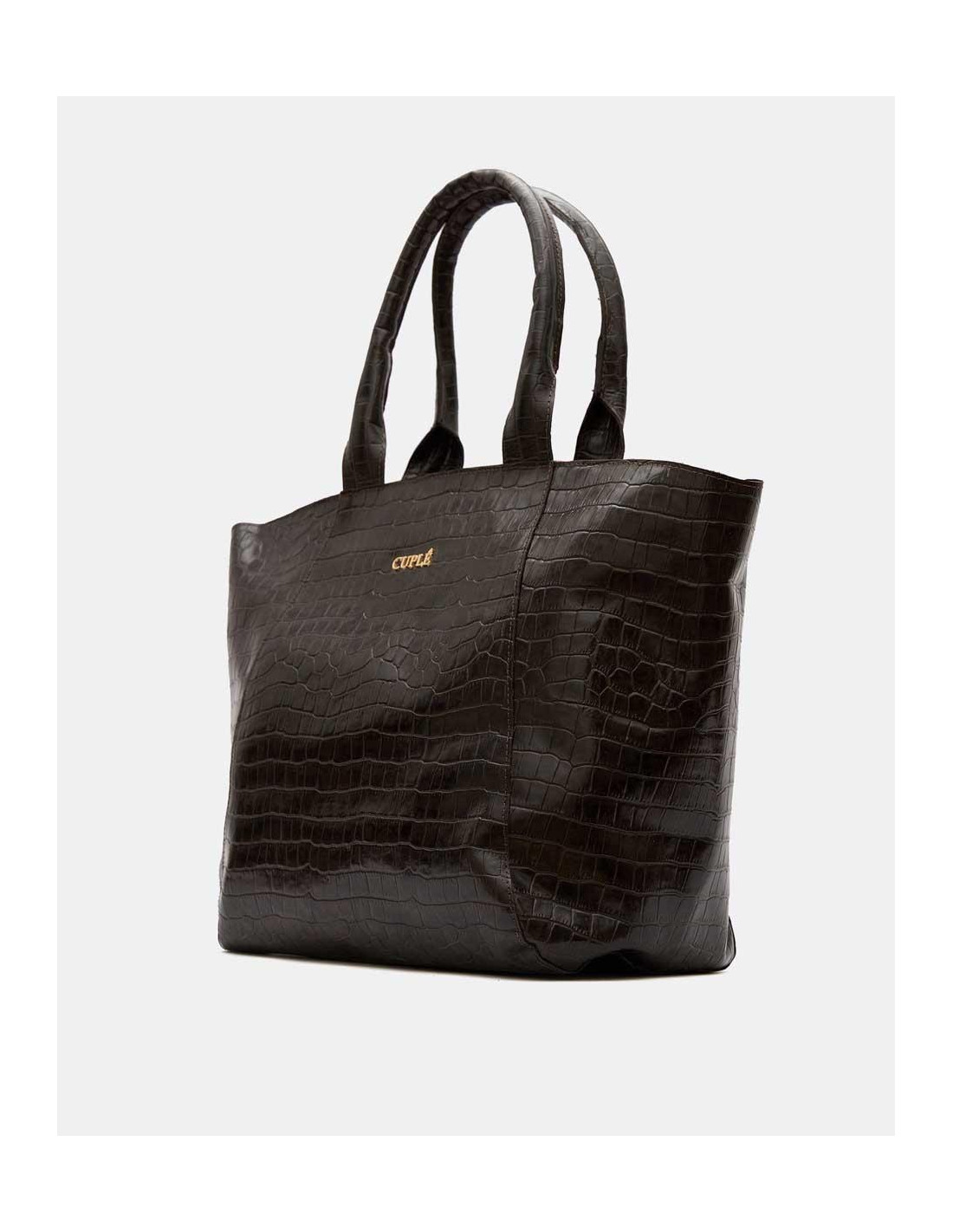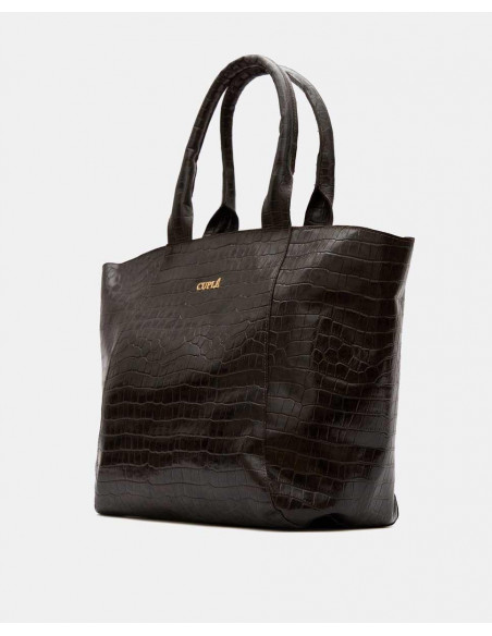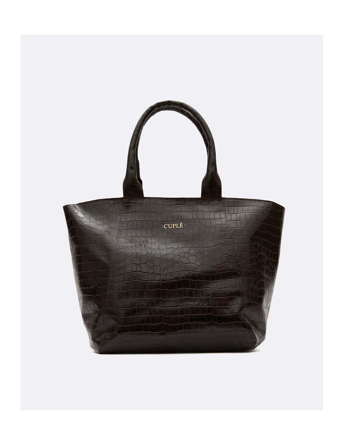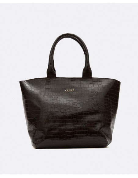 Bolso shopping grande confeccionado en España con piel de alta calidad con estampado de coco. Presenta logotipo metálico en tonalidad dorada y doble asa corta en piel.