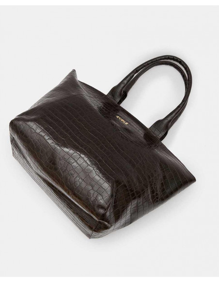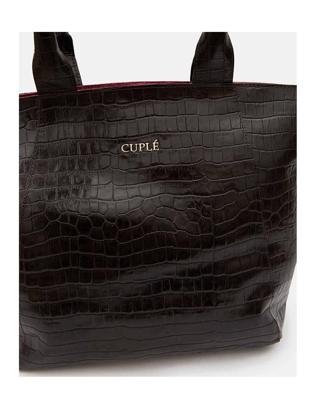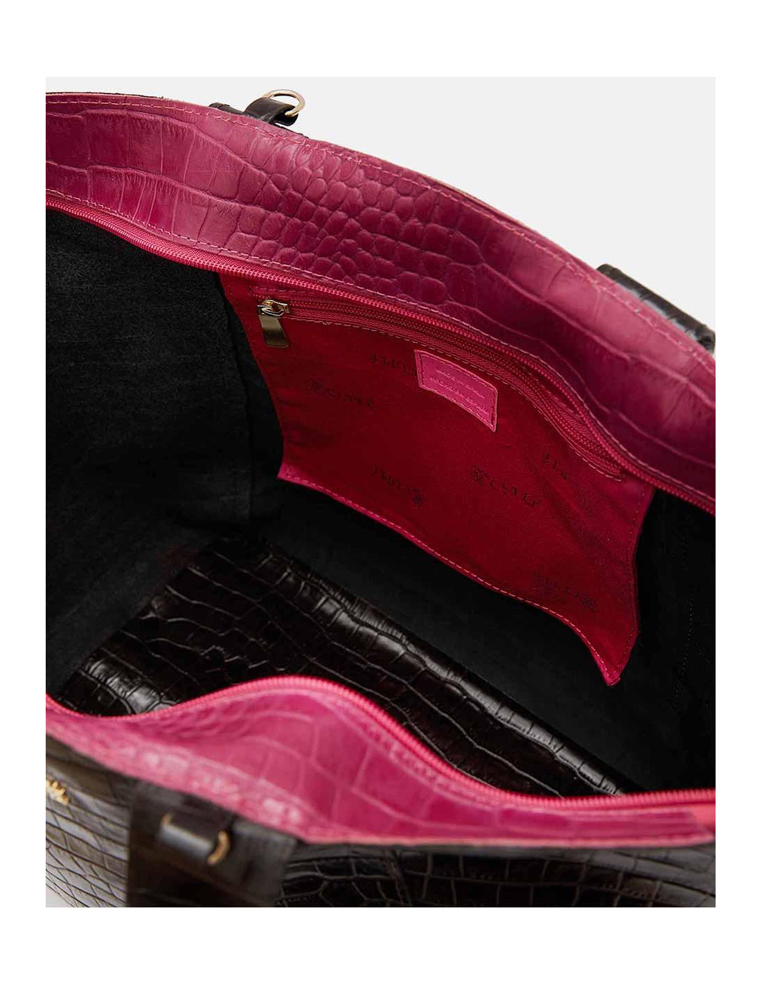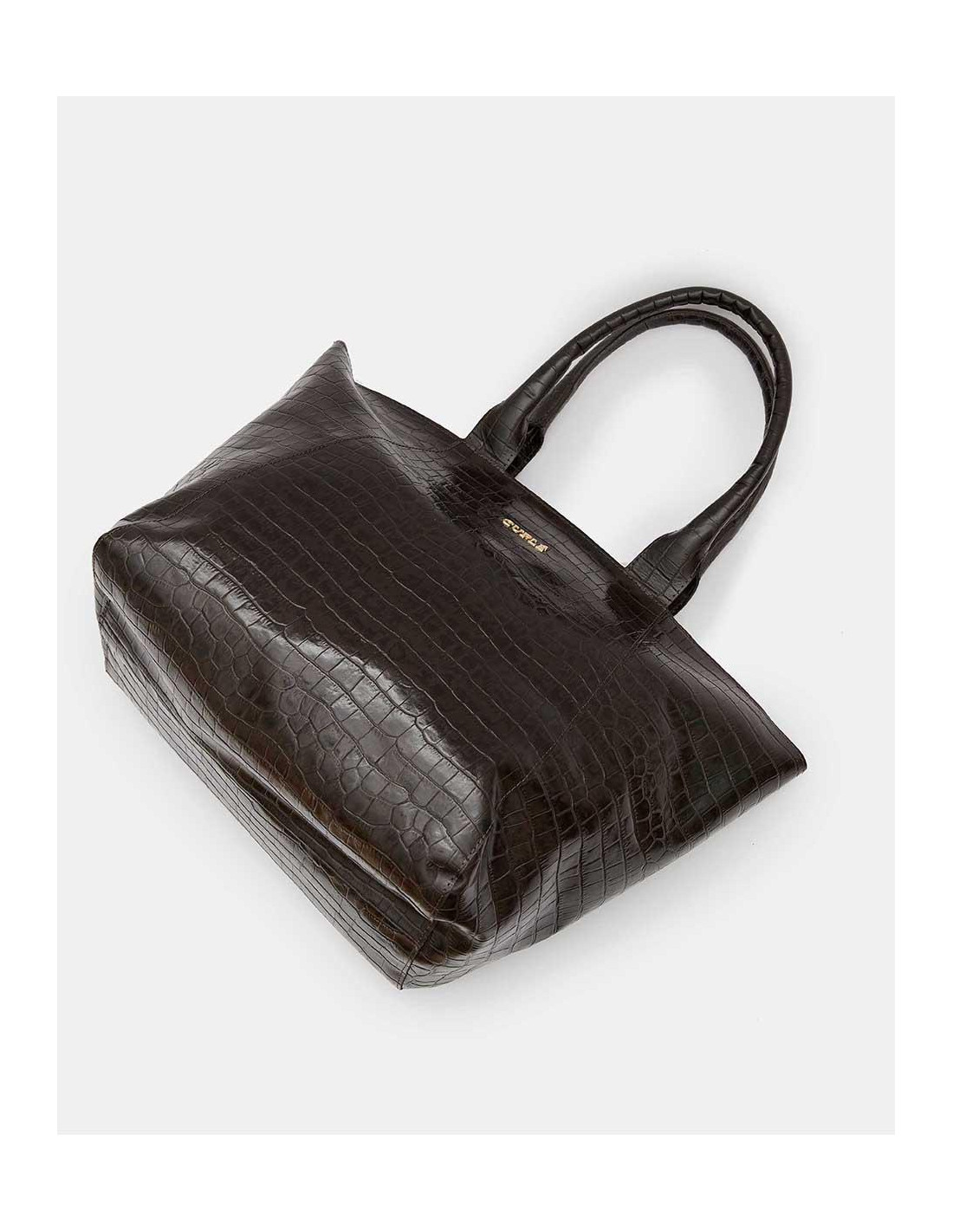 Bolso shopping grande confeccionado en España con piel de alta calidad con estampado de coco. Presenta logotipo metálico en tonalidad dorada y doble asa corta en piel.