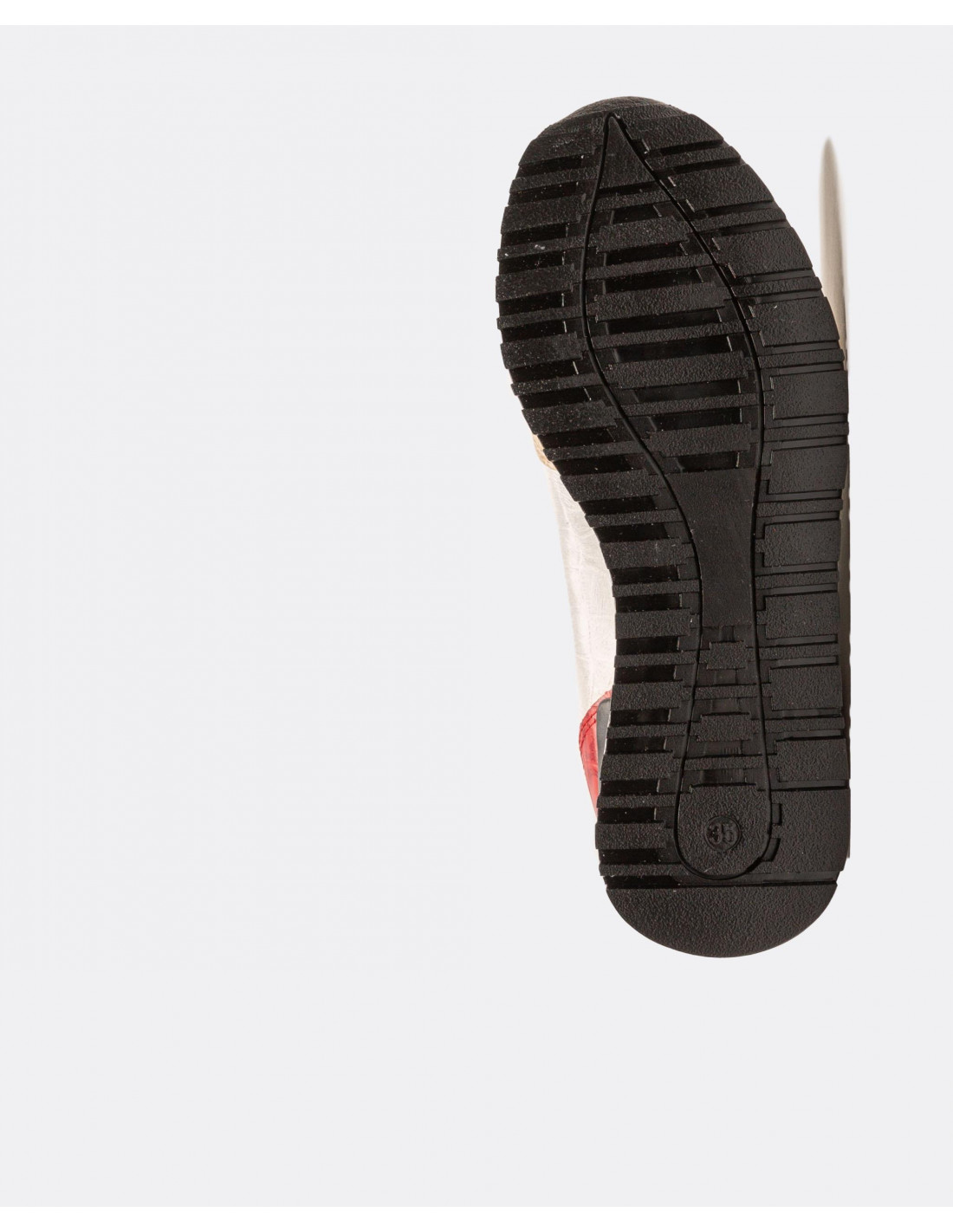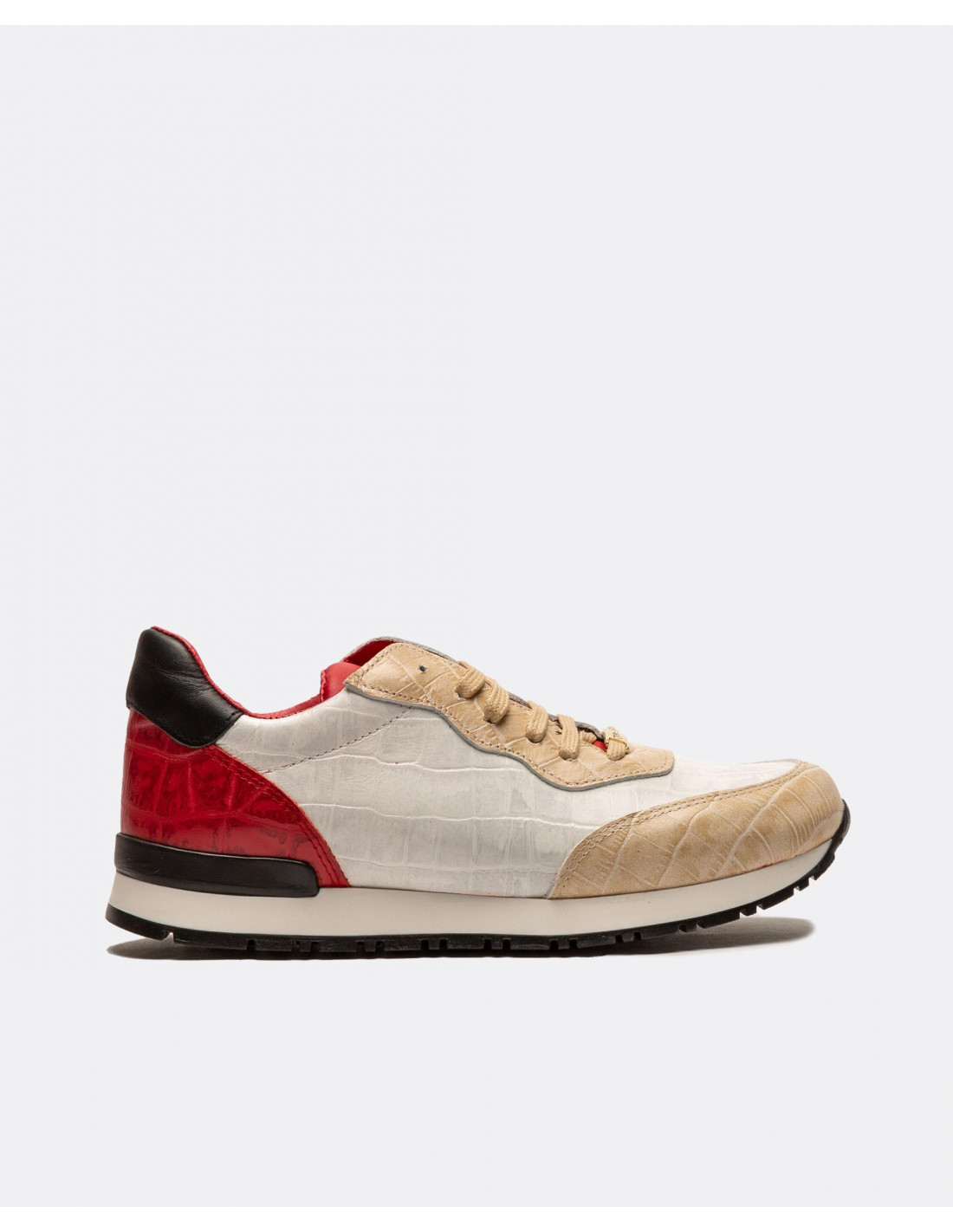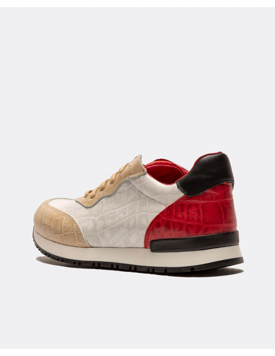 Deportivos en napa coco tricolor con la plataforma en la suela de color blanco y cordones de color burdeos. Perfectos para el día a día. Combínalos con unos pantalones vaqueros y un jersey.