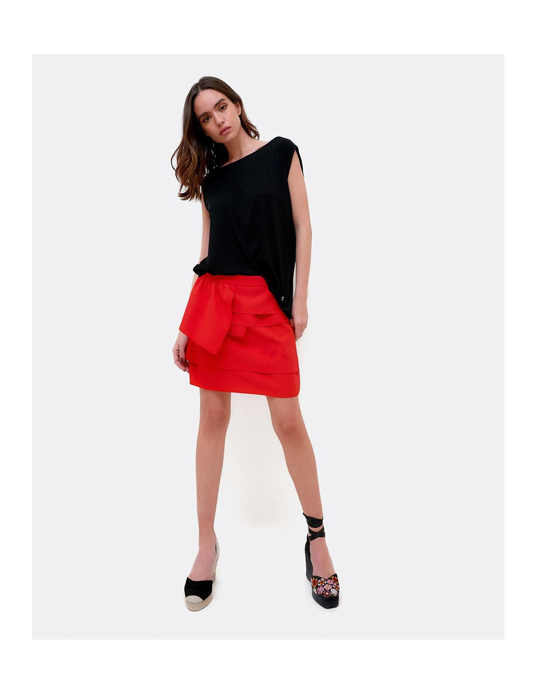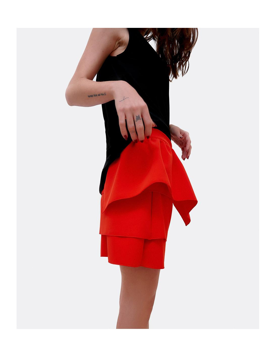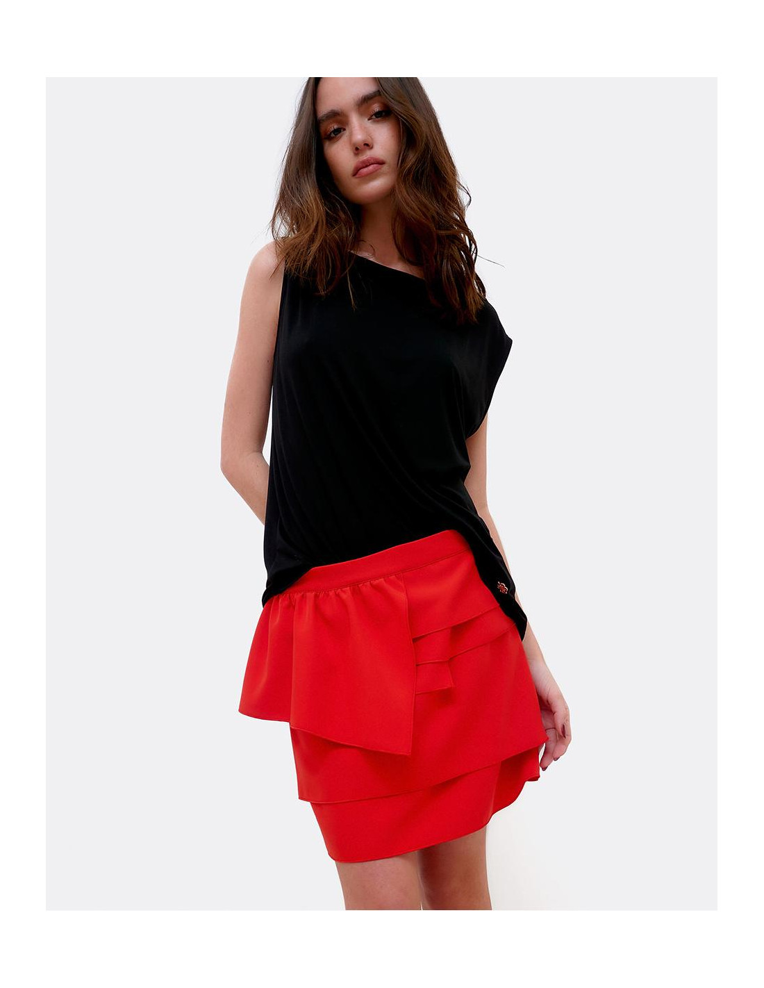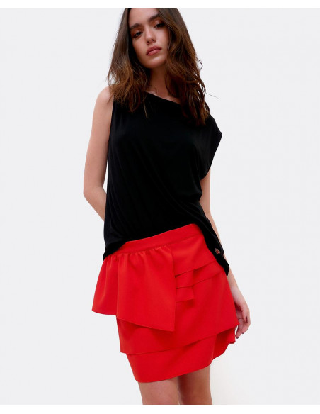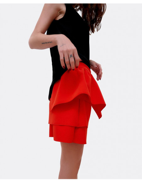 FALDA MINI VOLANTES CREP ROJO