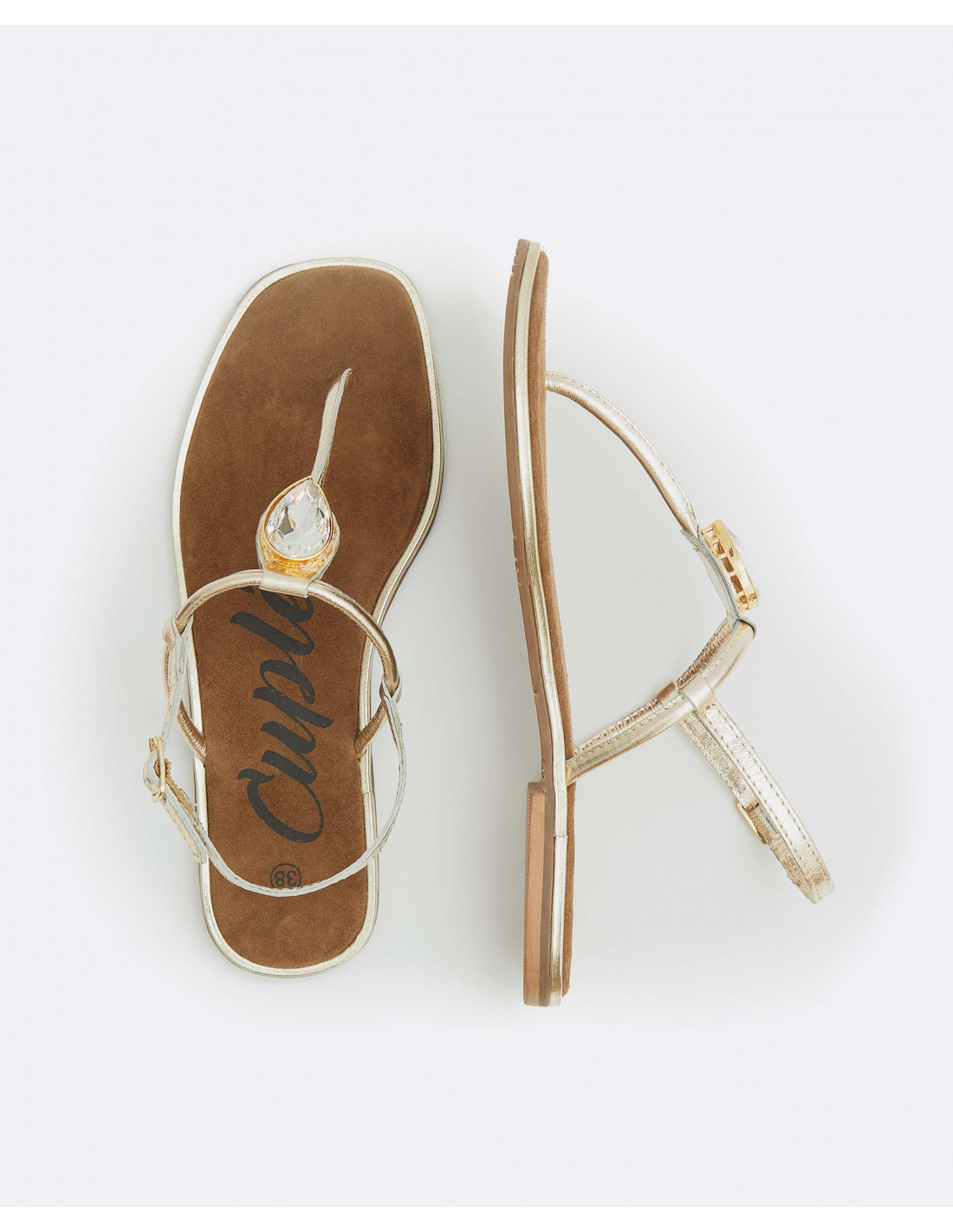 SANDALIA PUNTA CUADRADA NAPA ORO