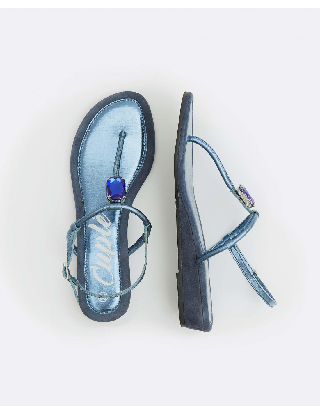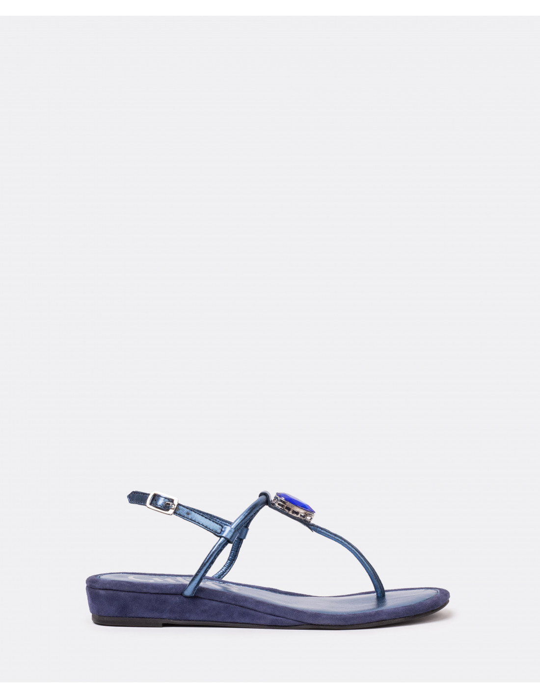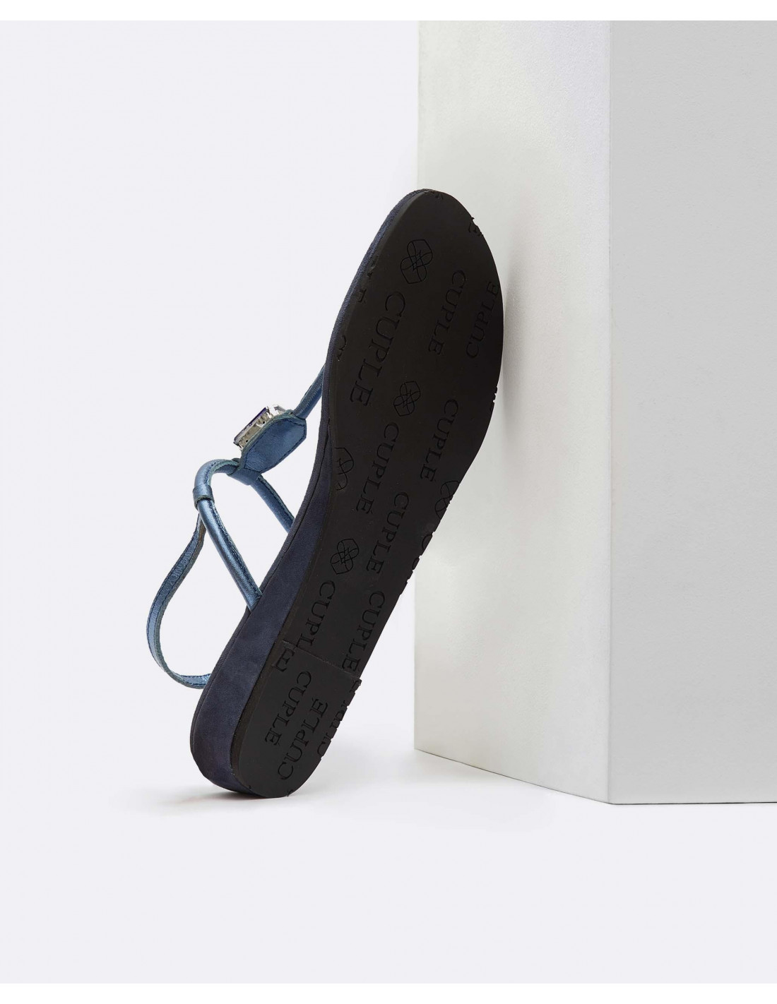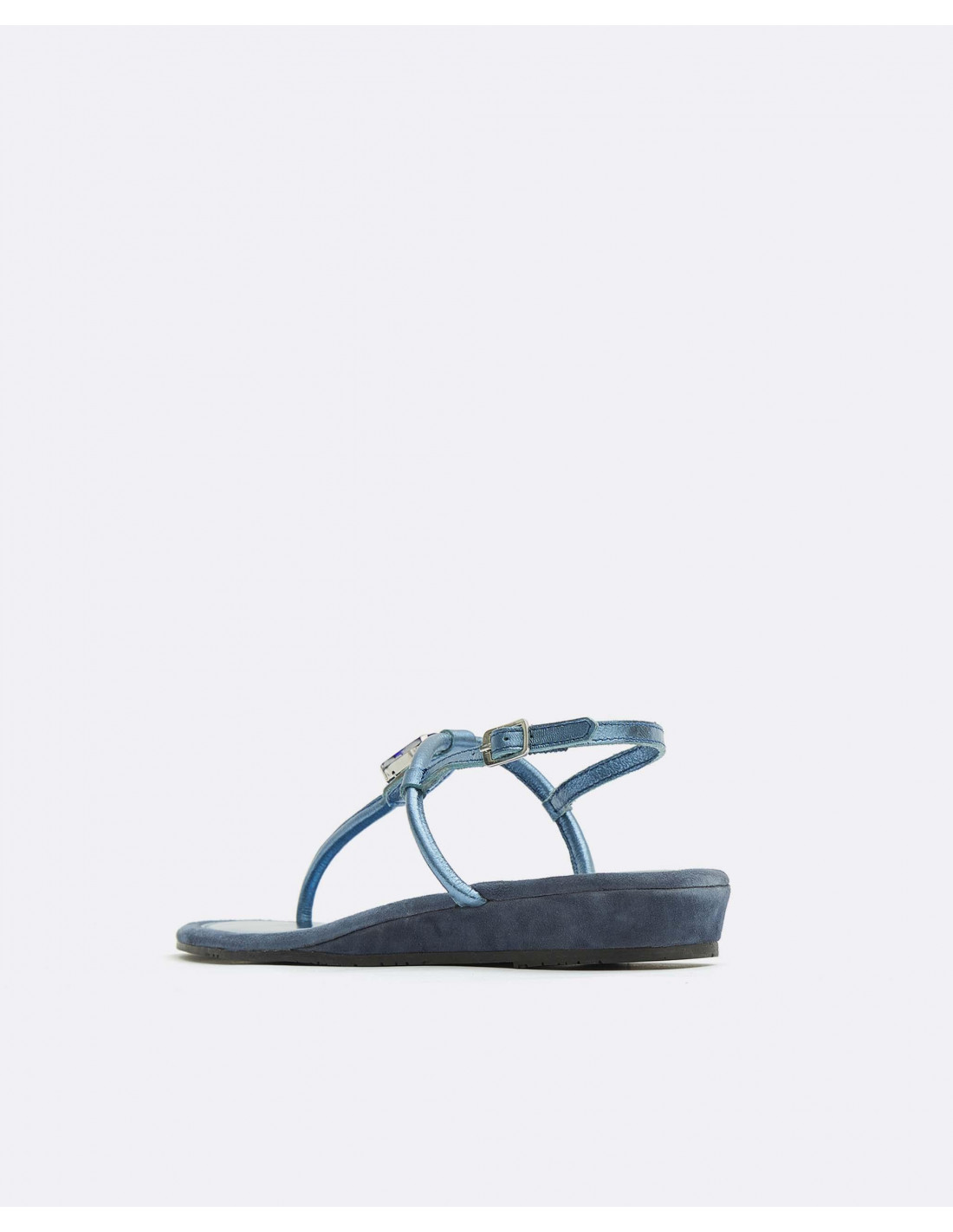 SANDALIA BRILLANTE DEDO PIEL METALIZADO MARINO