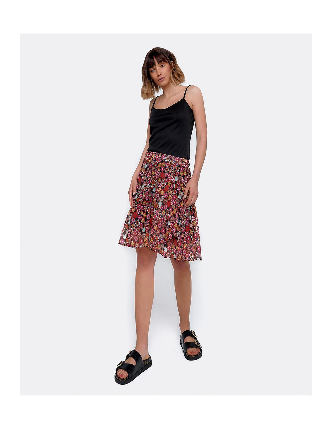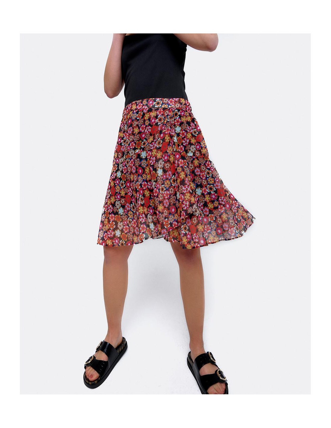 FALDA VOLANTES GASA ESTAMPADO FLORES...