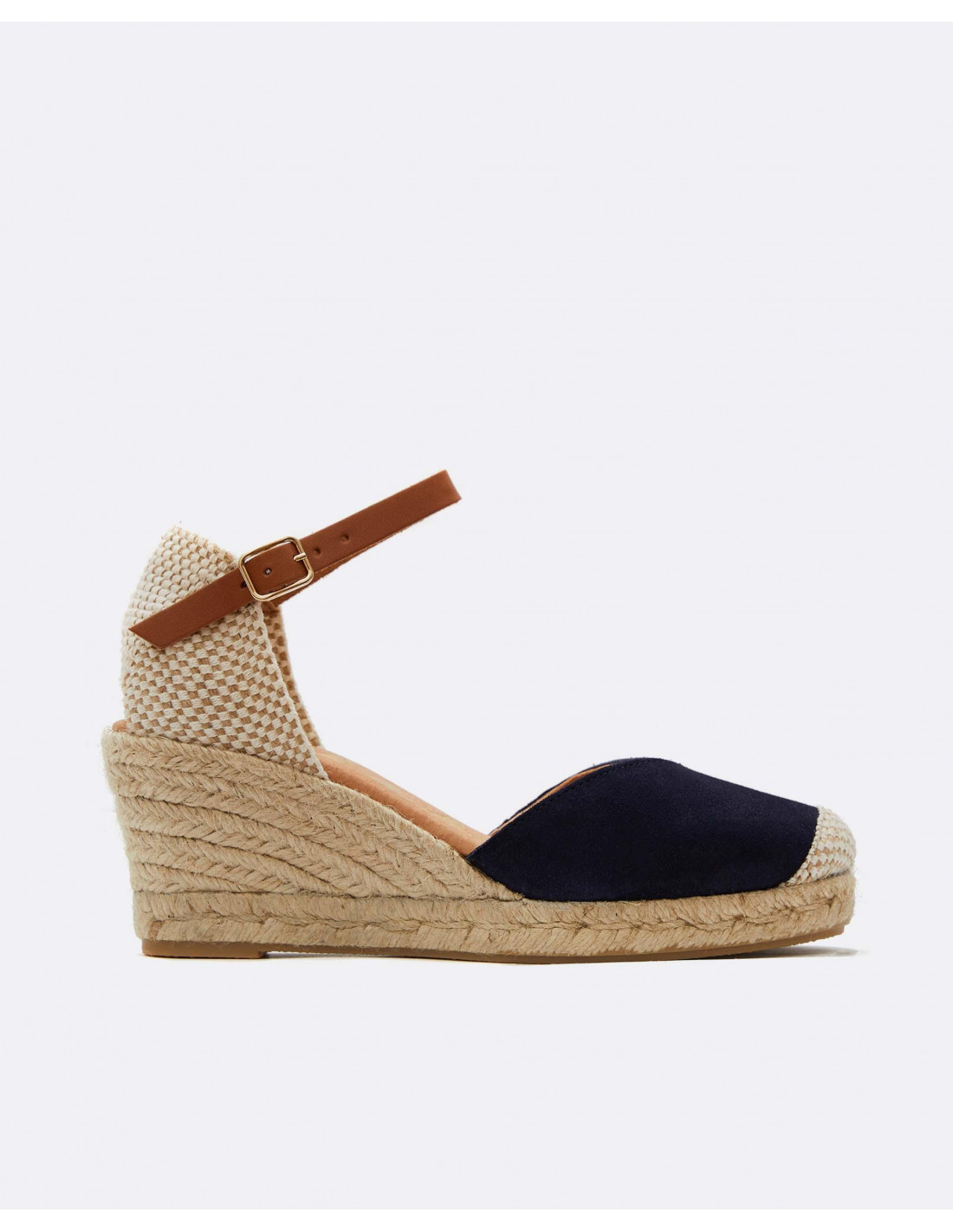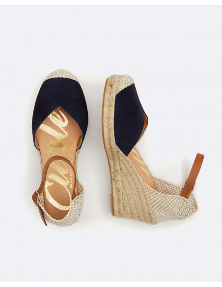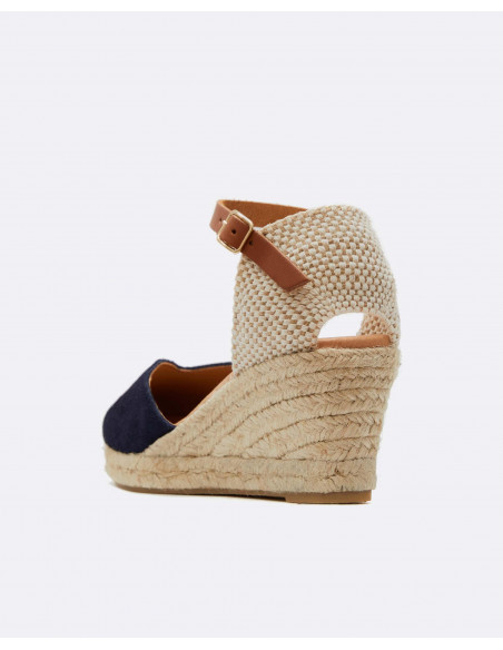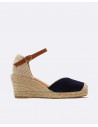 Valenciana elaborada en serraje en color beige. Cierre al tobillo mediante hebilla.