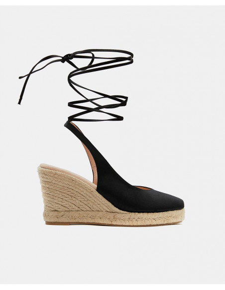 CUÑA YUTE DESTALONADO CON CINTA RASO NEGRO