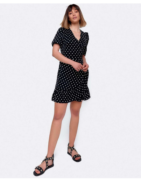 VESTIDO MINI CRUZADO ALGODON LUNARES