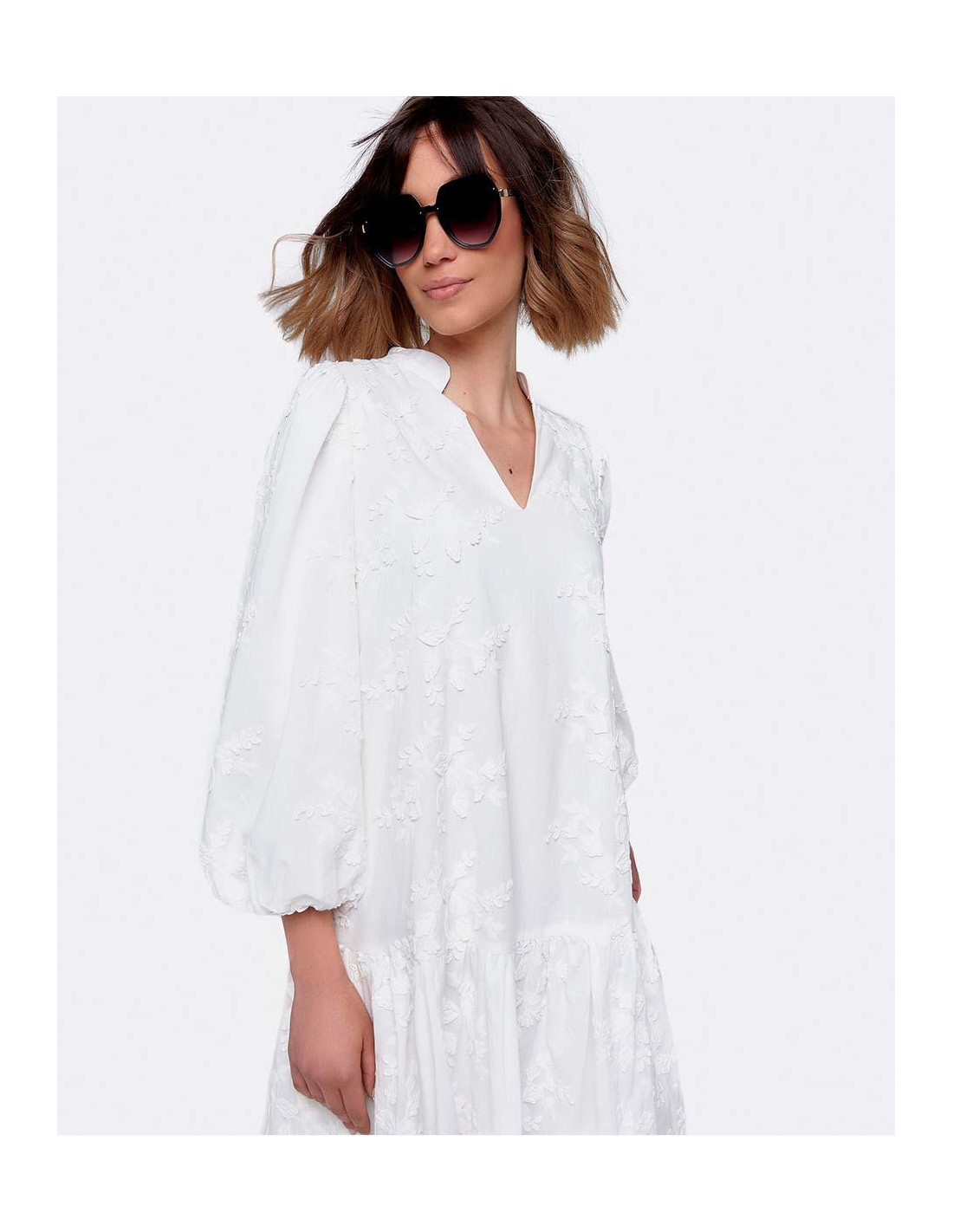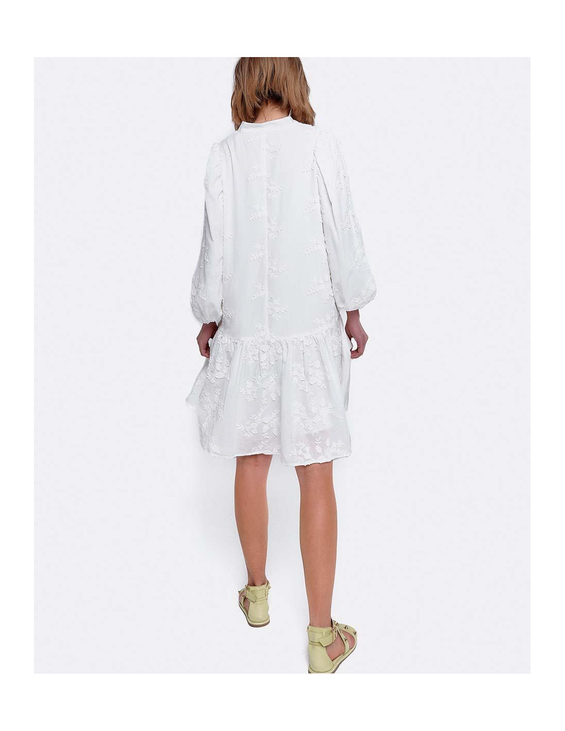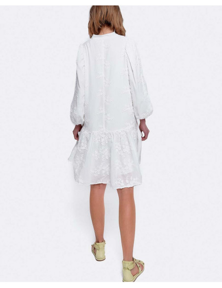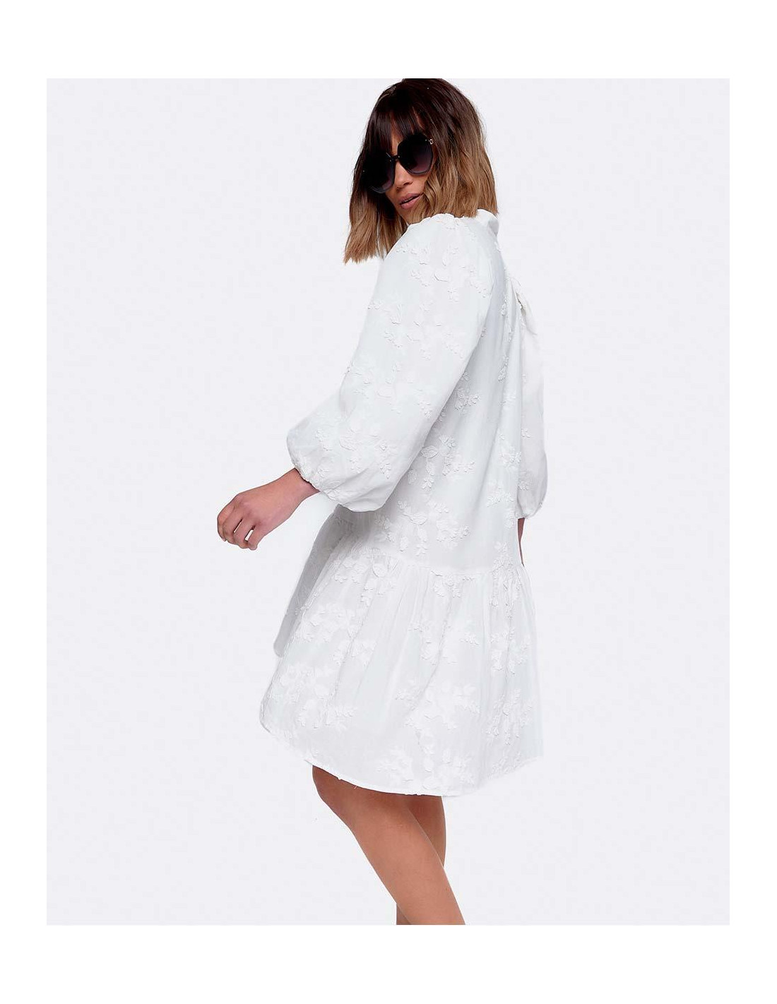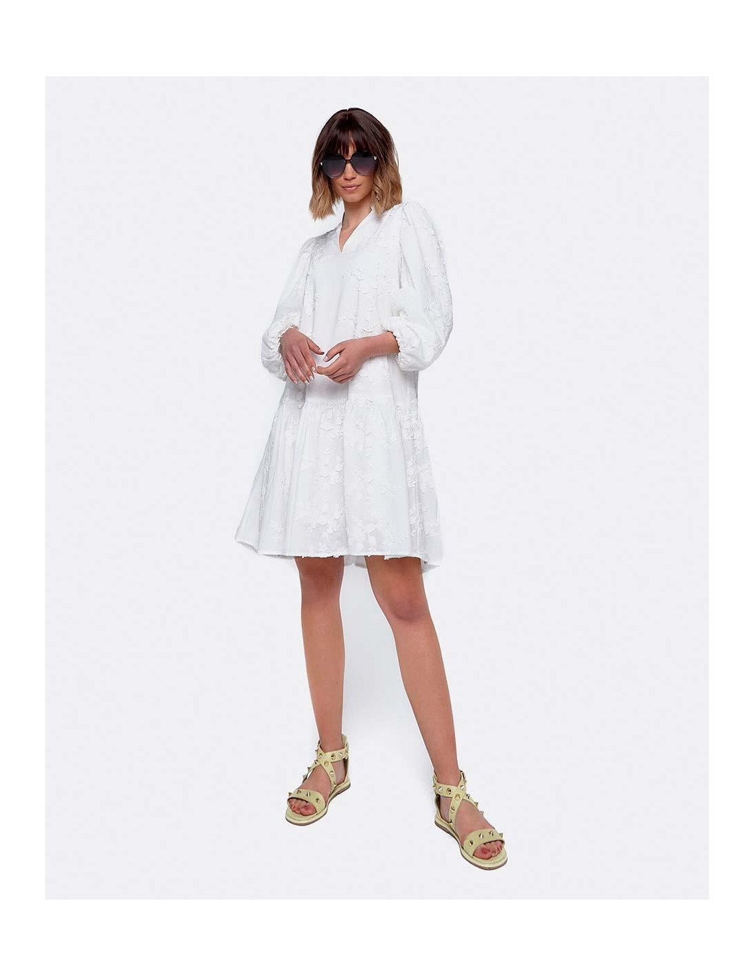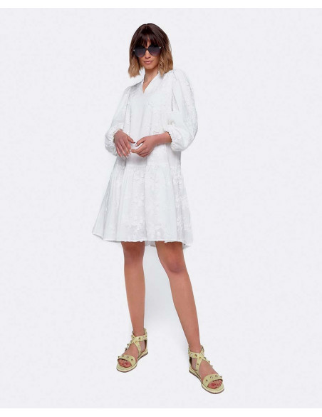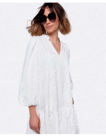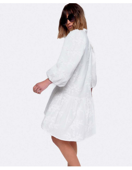 VESTIDO MINI MANGAS VOLUMEN ALGODON BLANCO