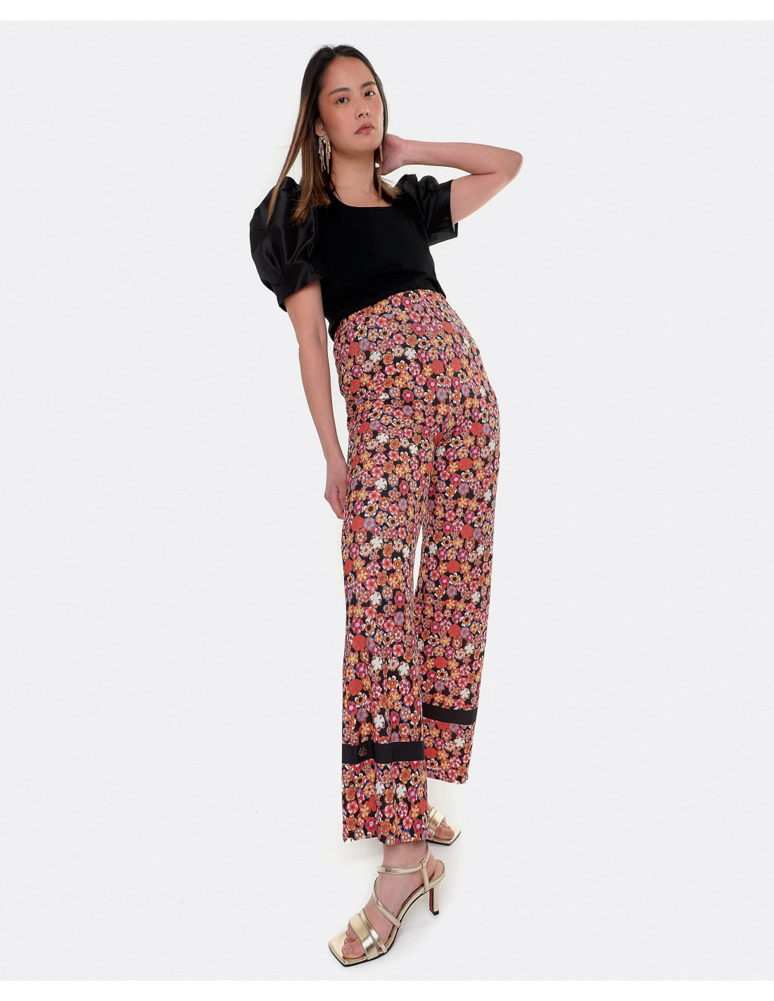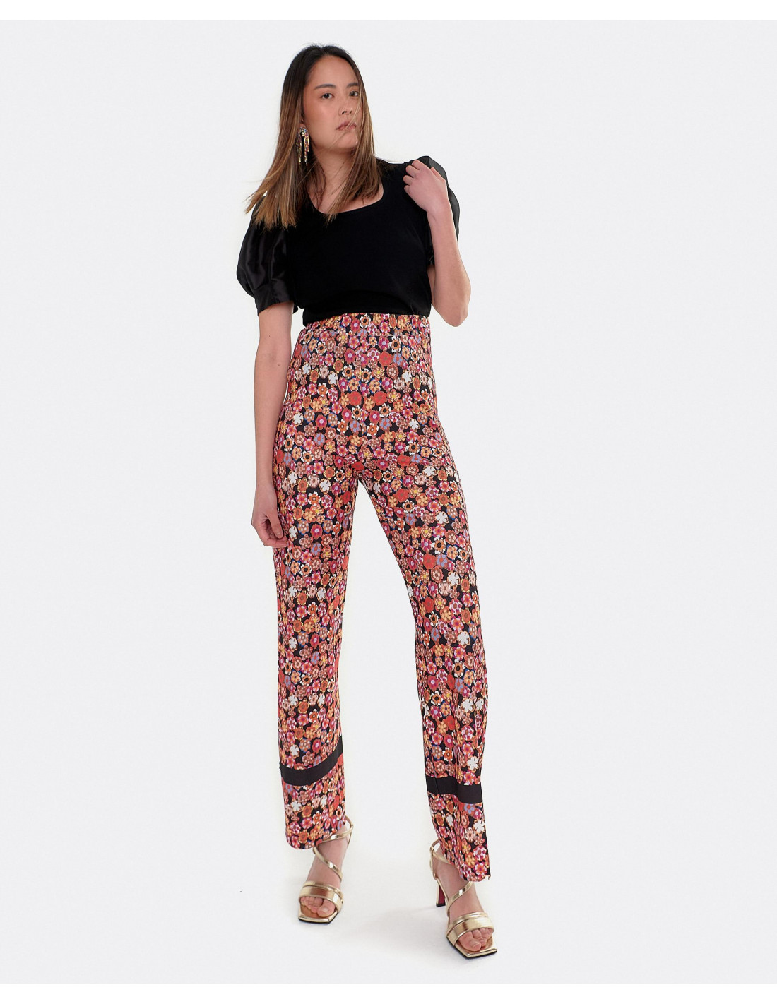 Nuestro estampado de flores Liberty es ideal para cualquier ocasión, en este caso el pantalón con el bajo mas ancho le da un toque especial, que combinado con alguna prenda lisa arriba cobrará todo el protagonismo en tu look.