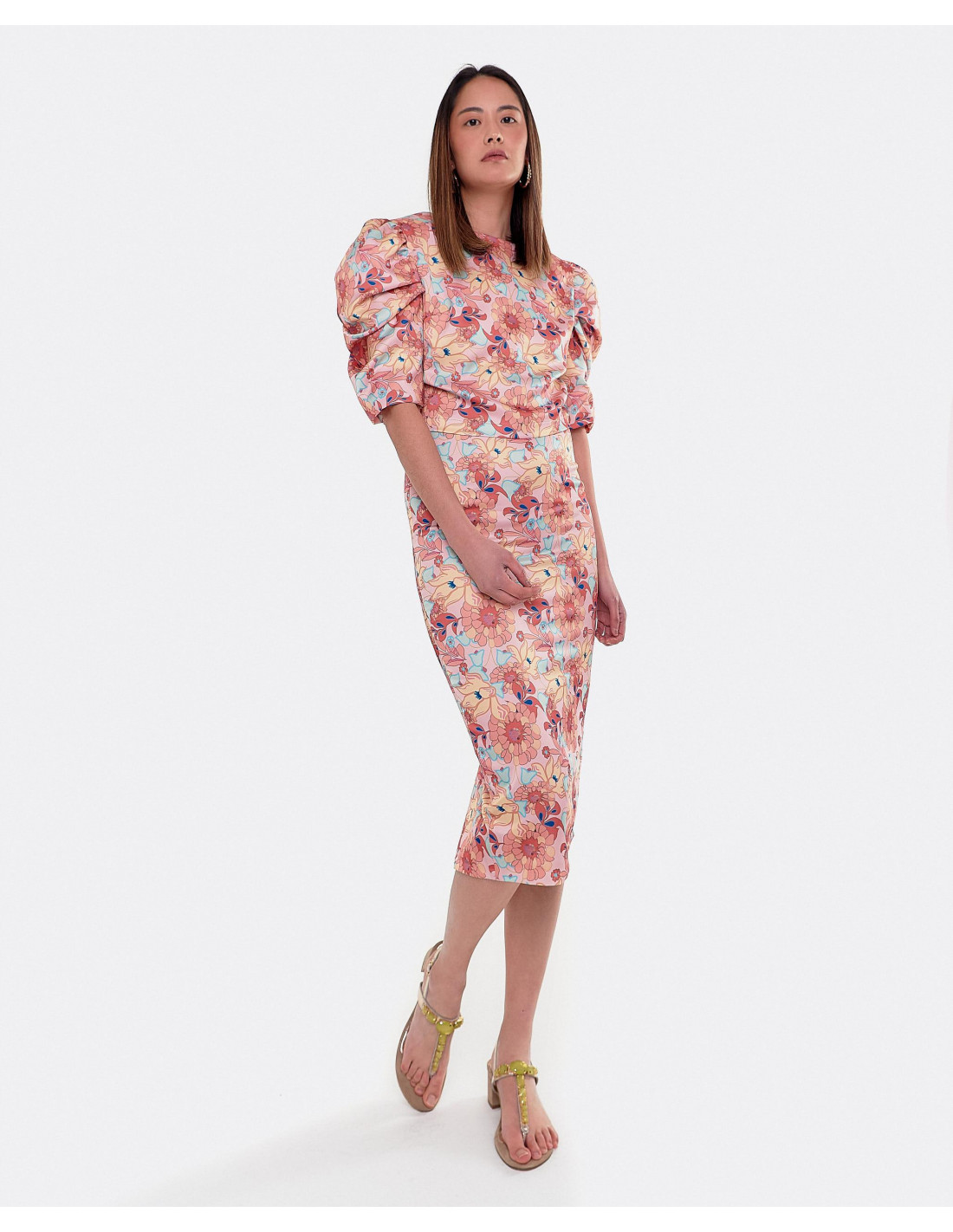 FALDA TUBO LARGO MIDI CREP ESTAMPADO FLORAL