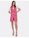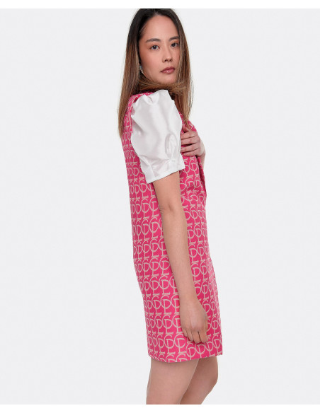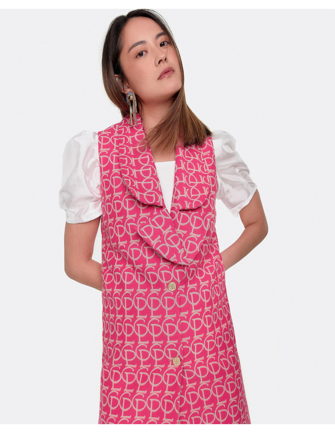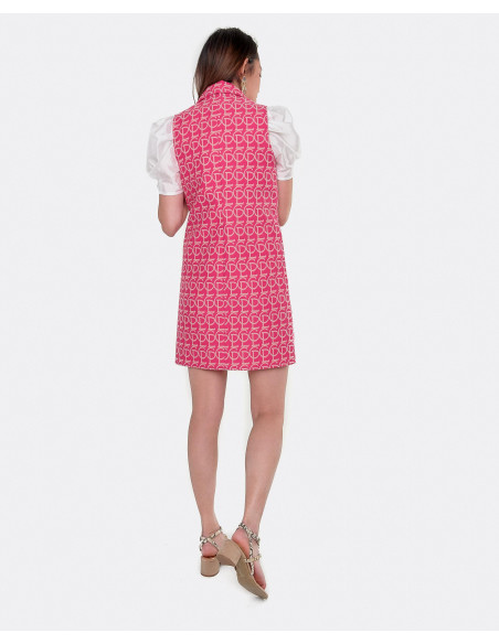Ideal este vestido chaleco con nuestro estampado Jacquard CPL, pero esta vez en rosa para añadirle mas color a nuestro looks. Lo podemos dejar sin nada debajo o añadiéndole otro toque distinto con alguna blusa o camiseta blanca debajo.