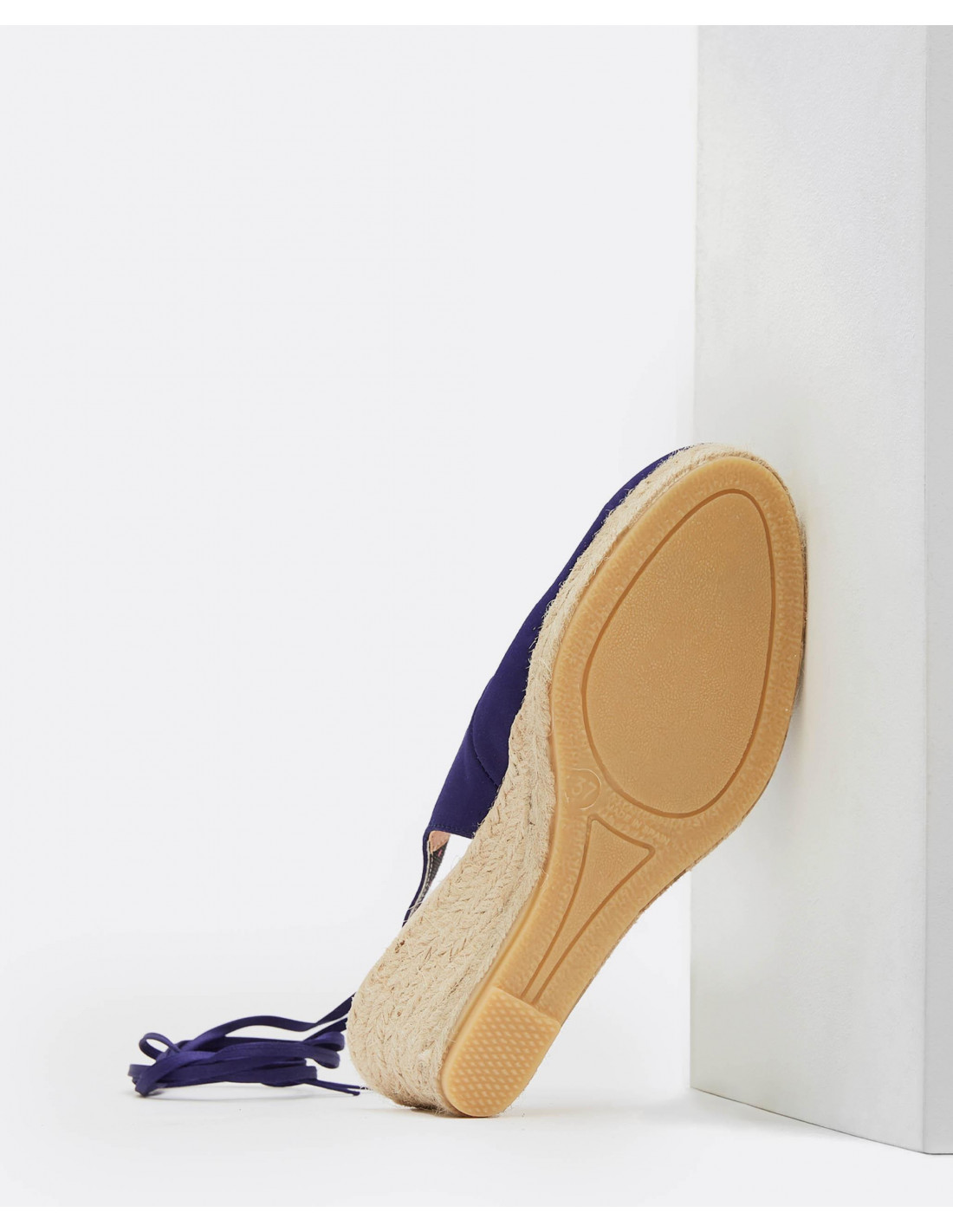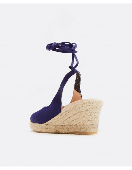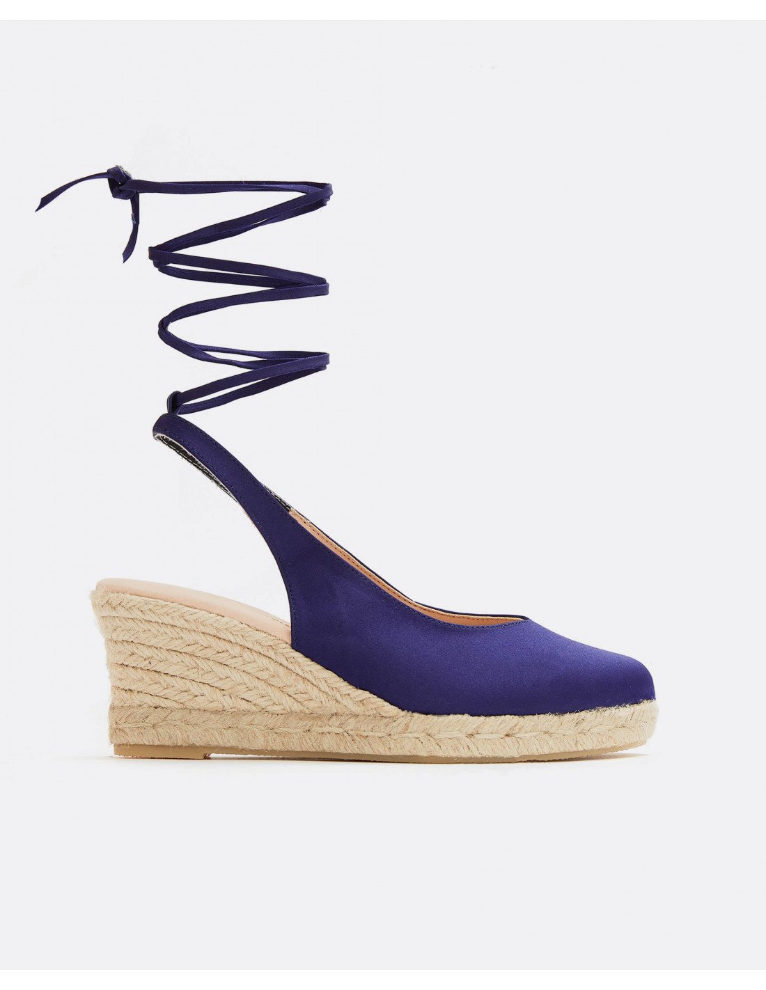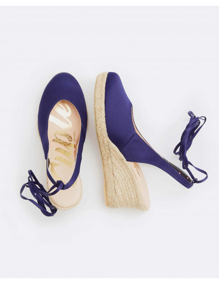 CUÑA YUTE DESTALONADA CON CINTA RASO AZULON