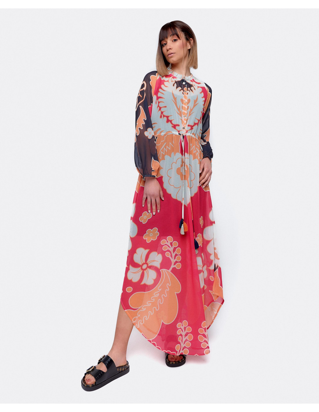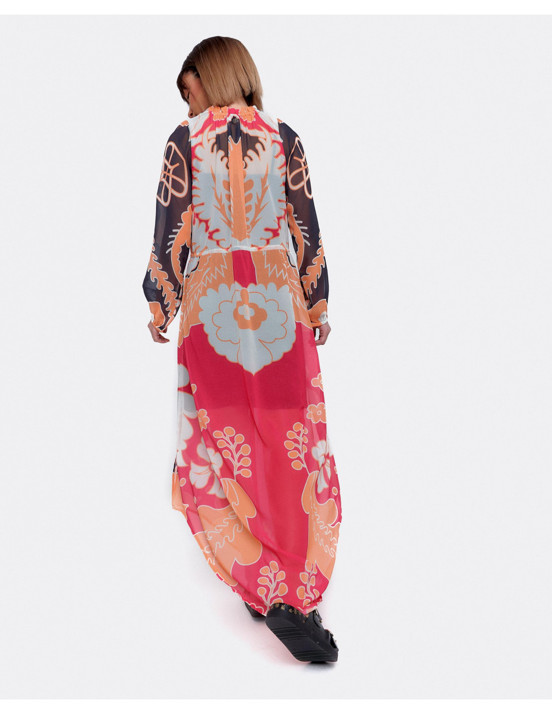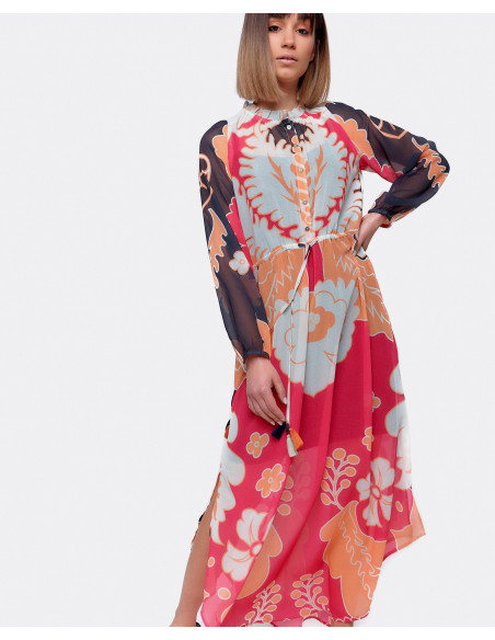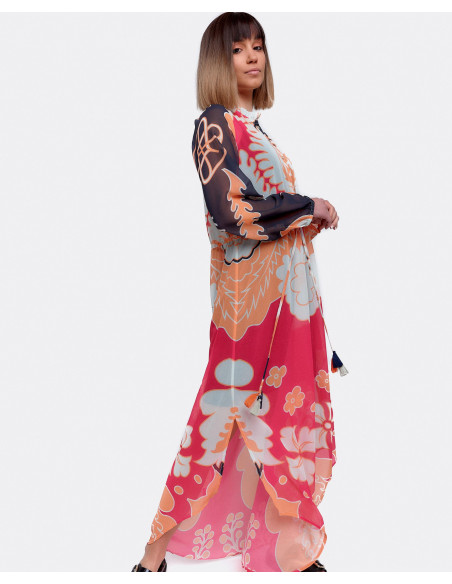 Vestido gasa, manga larga estampado valiente. La opción perfecta para las noches de verano.