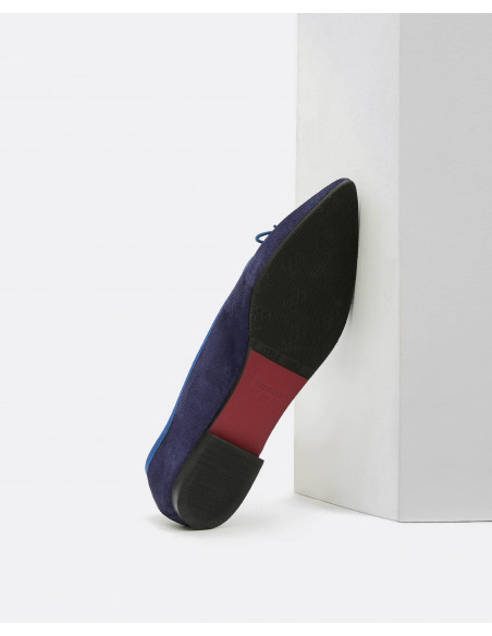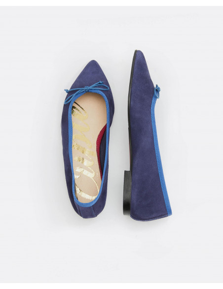 Bailarina de serraje con detalle de lazo. Las clásicas bailarinas de siempre con un toque diferente y punta fina ideal para ir cómoda y perfecta.