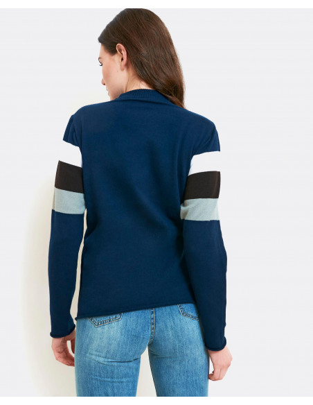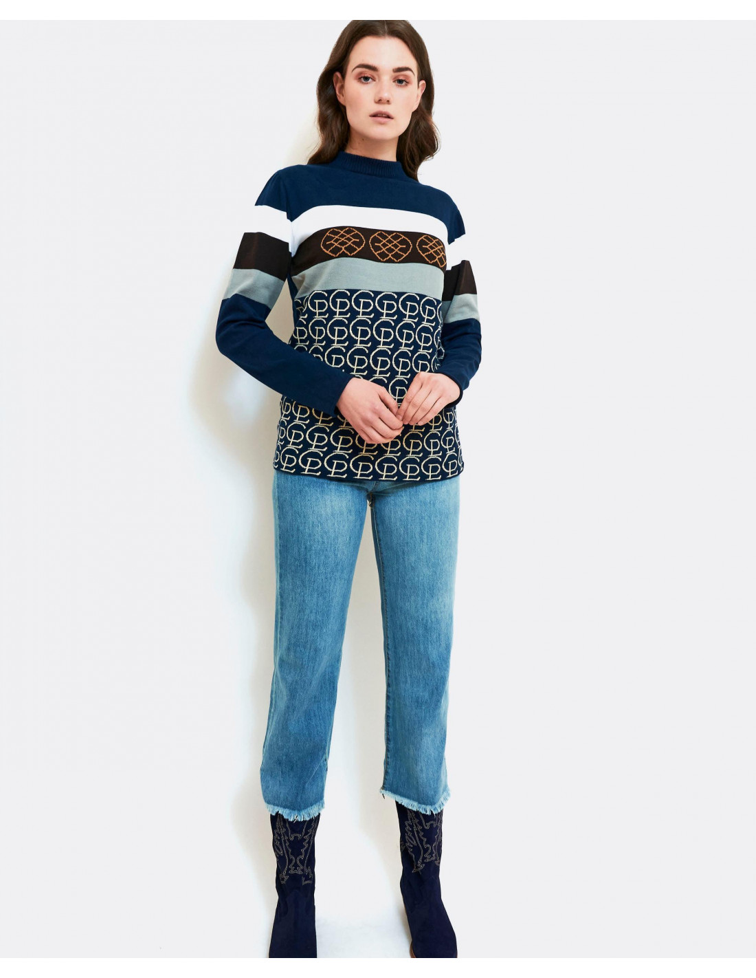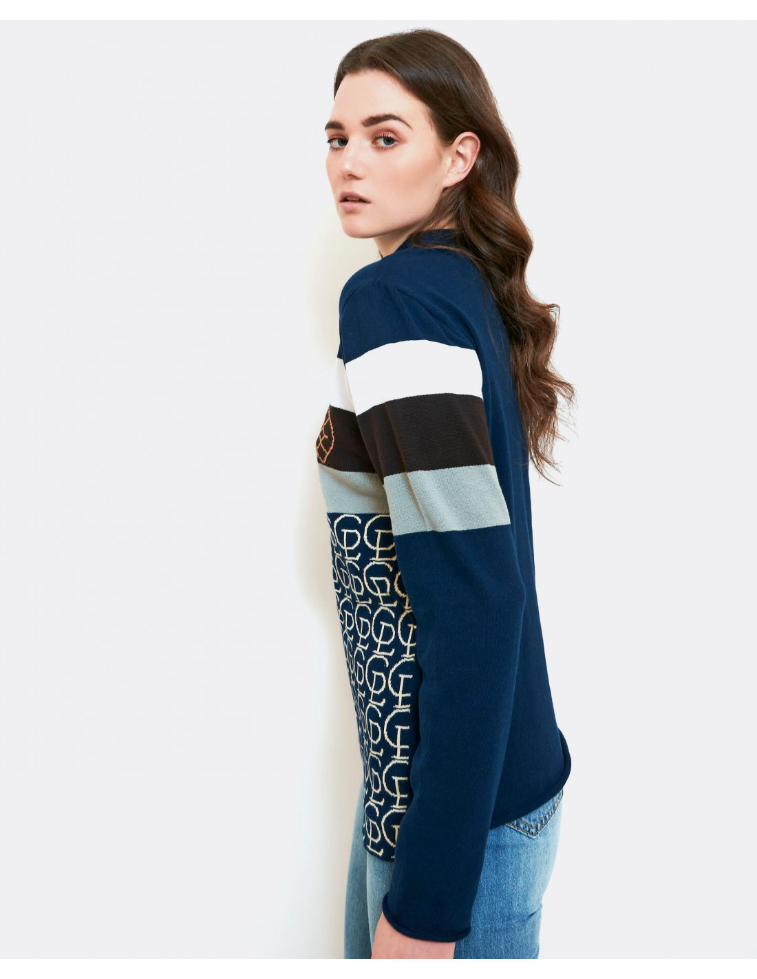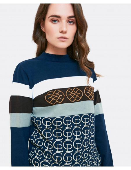Jersey realizado en punto con los logos de la marca, combinado con los colores más representativos de la campaña invierno 2021. Con cuello recondo. Manga larga. El jersey que no podrá faltar este invierno en tu armario. Te aconsejamos coger tu talla.