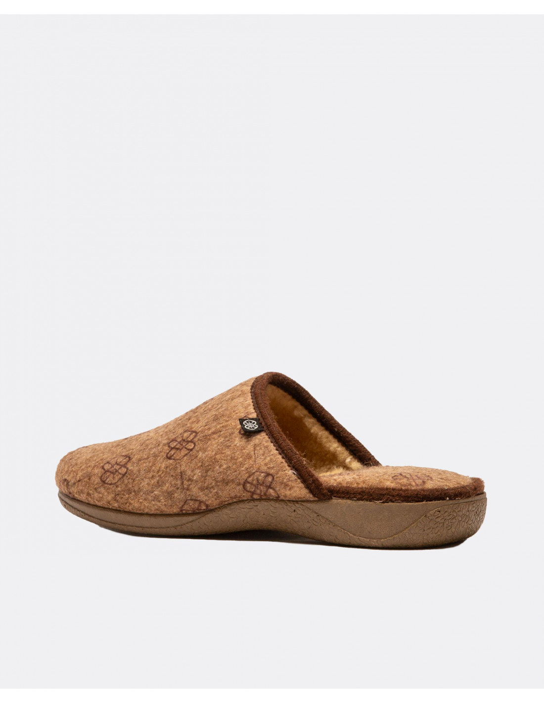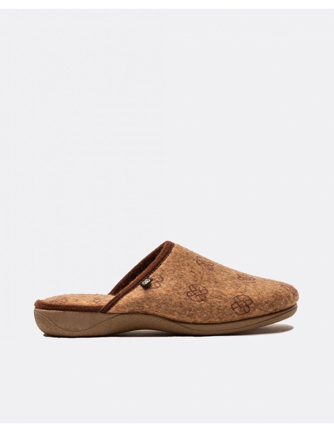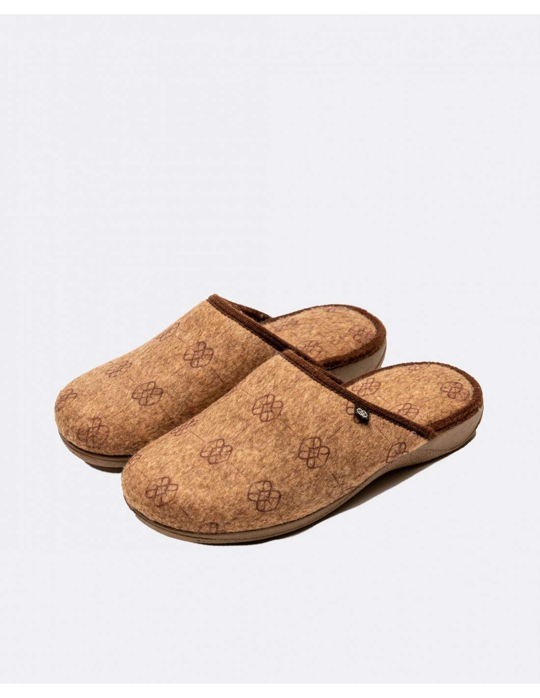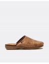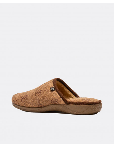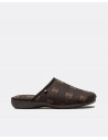 Zapatillas de estar por casa en color marrón con estamapdo de logos en color marrón. Diseñadas para proporcionar el máximo confort.