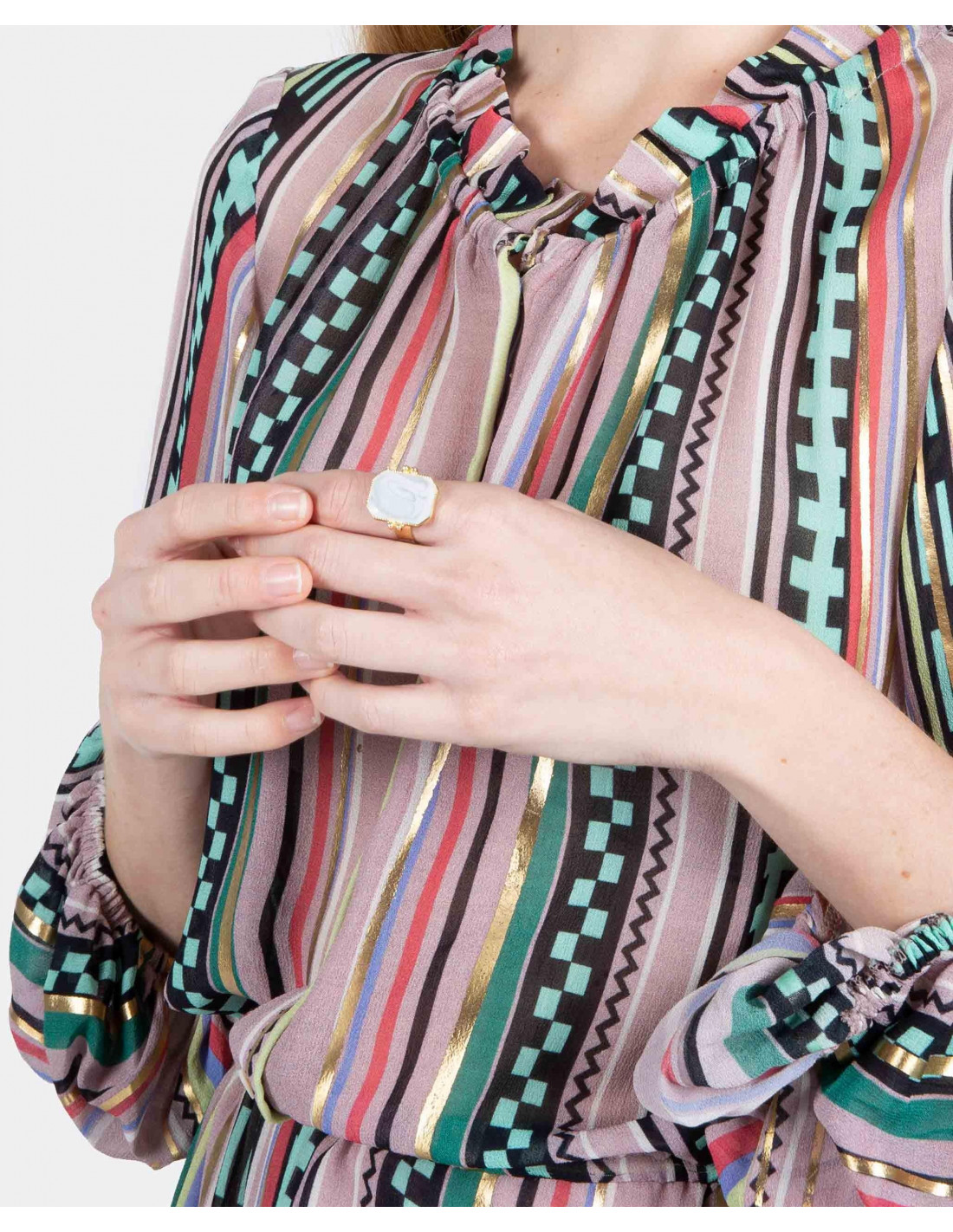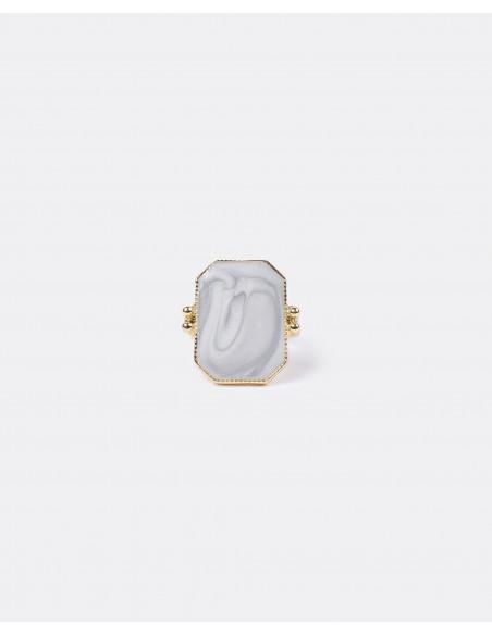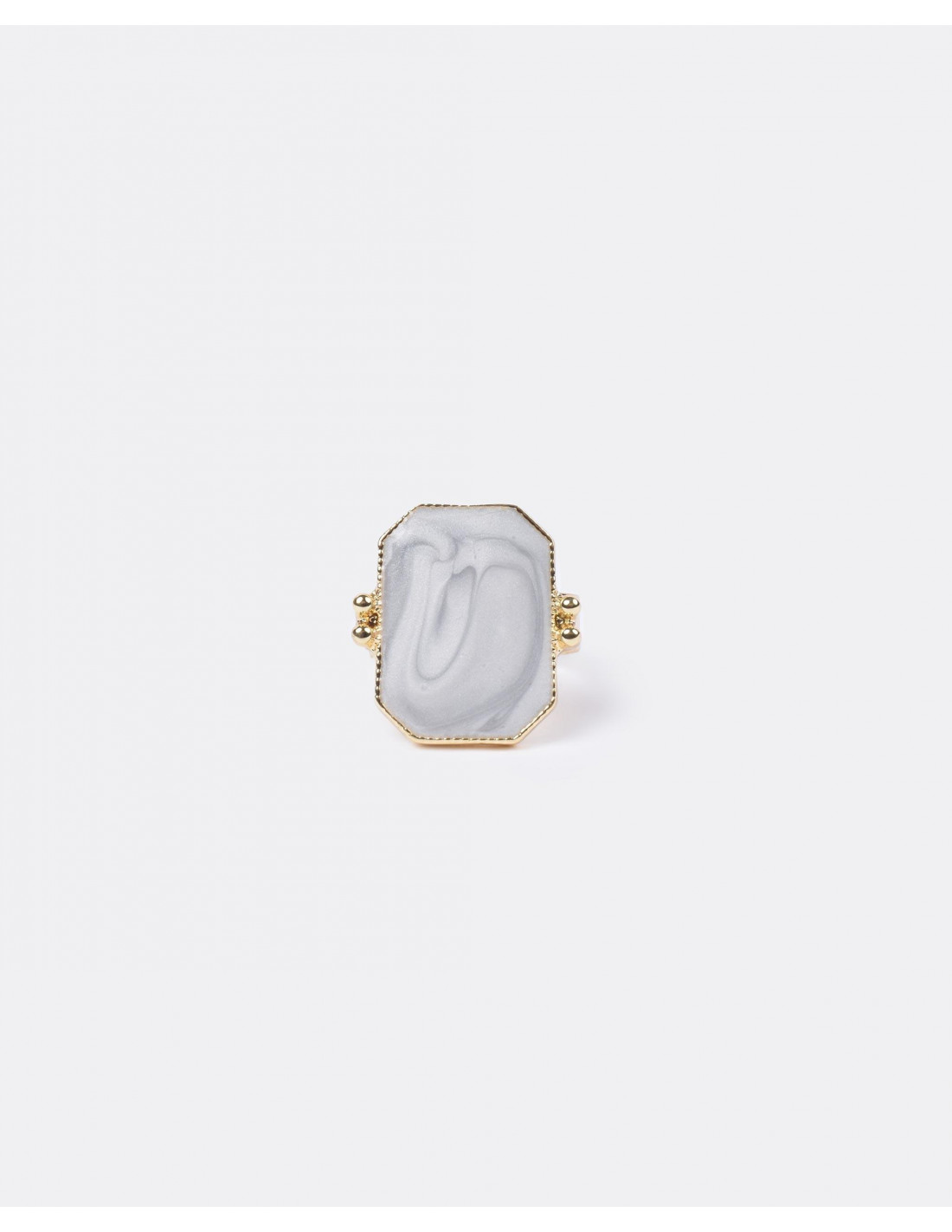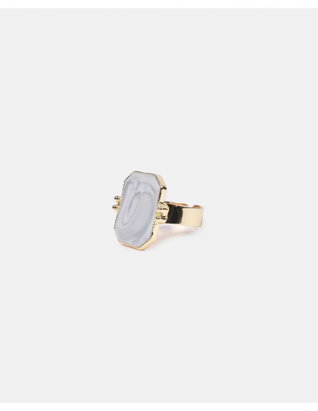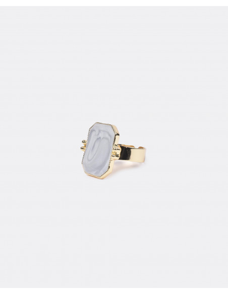 Anillo lacado en metal de color blanco y oro. Convierte un look de lo mas basico a lo mas innovador.
