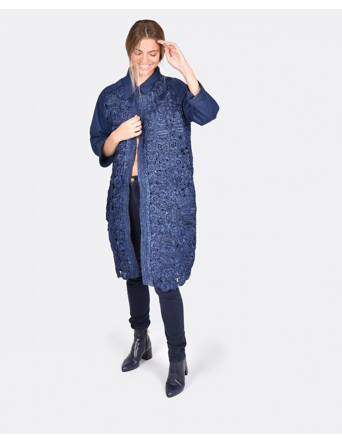 CHAQUETA CROCHET MIDI SARGA MARINO