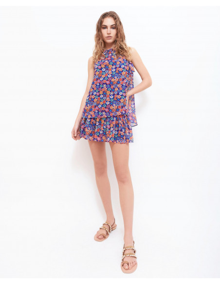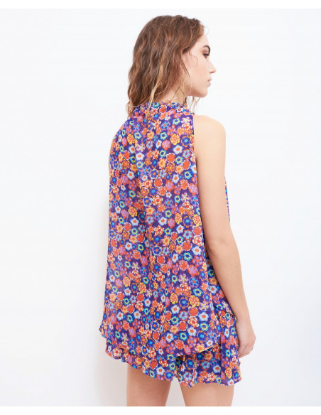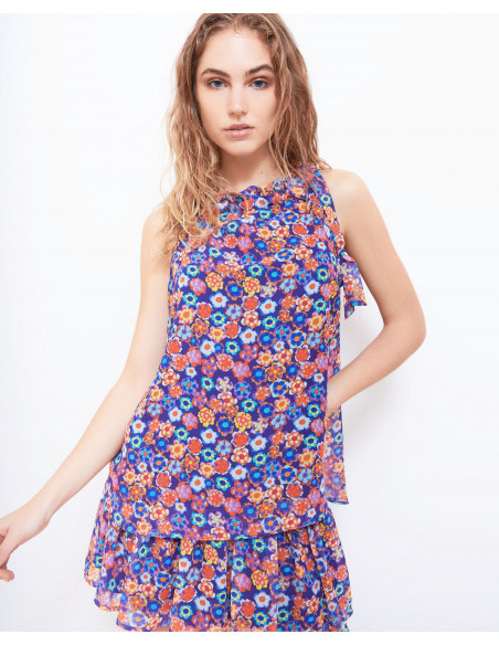 Blusa con estampado floral Cuplé con escote barco alto y tirantes finos. Tejido ligero, con caída y corte recto.