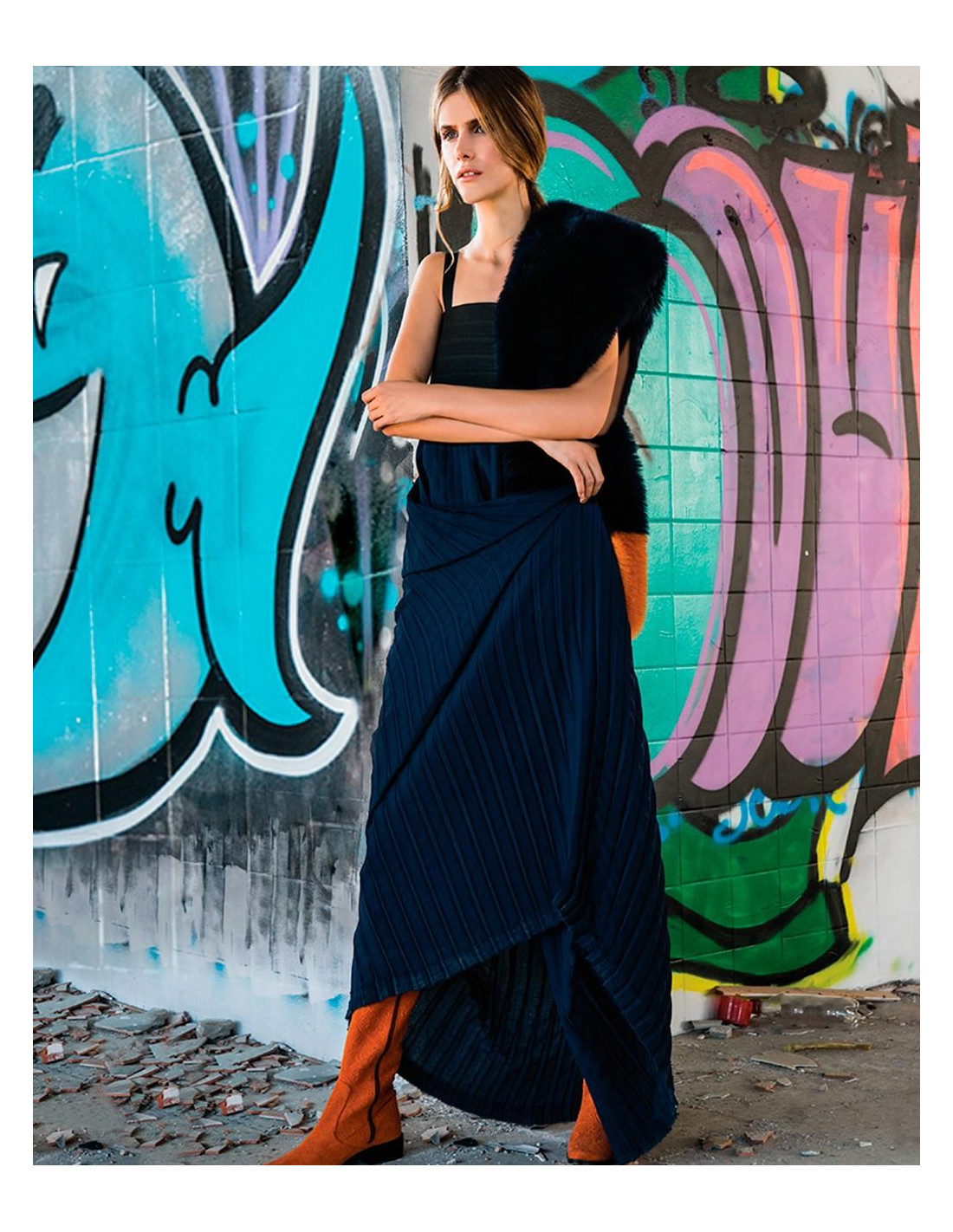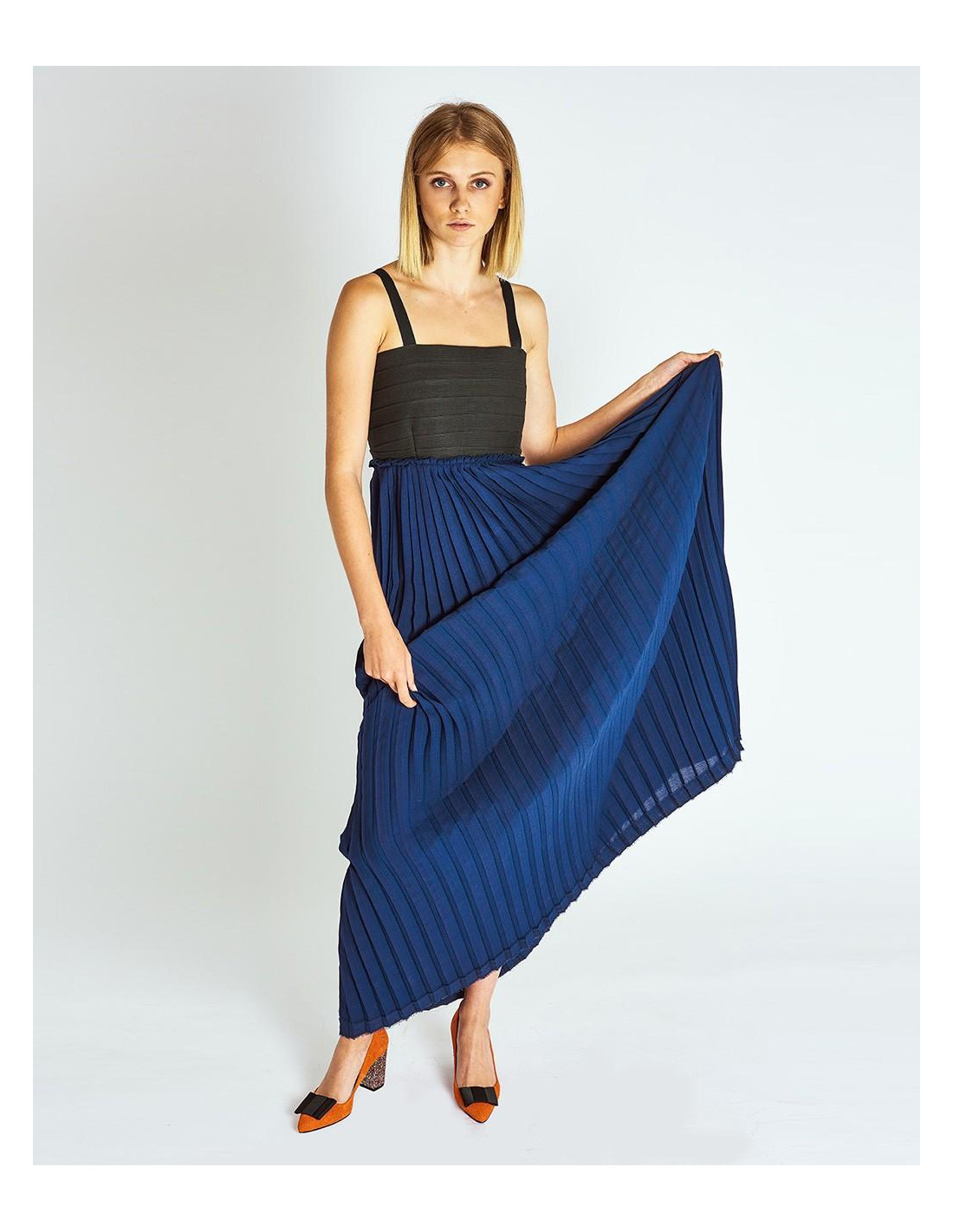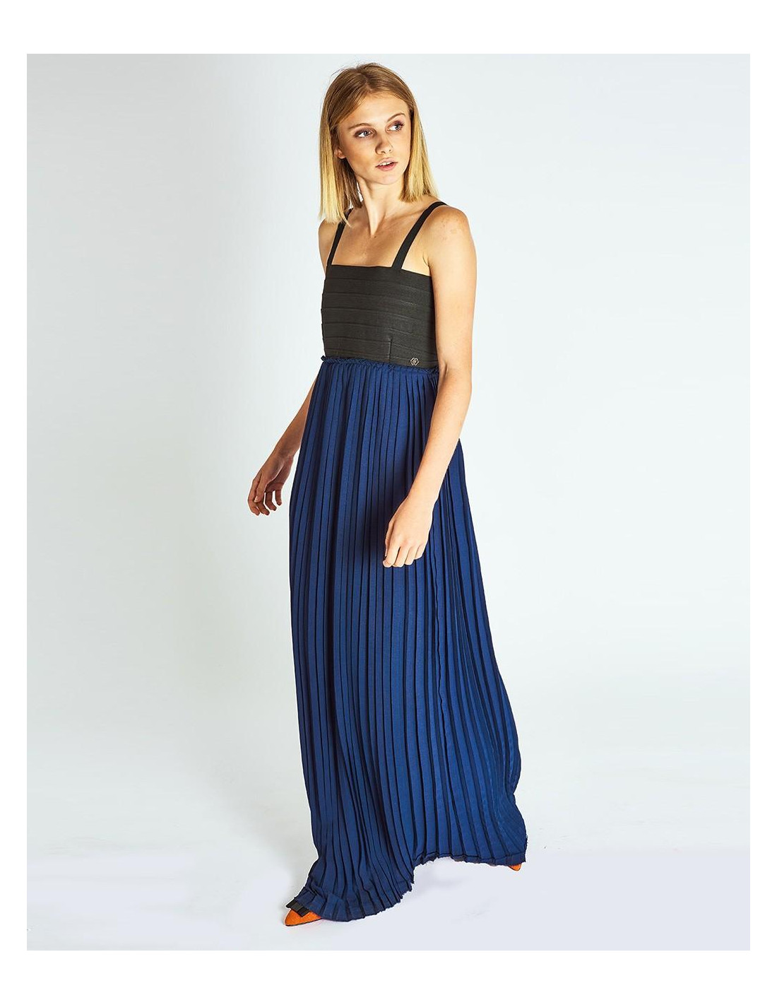 MAXI VESTIDO FALDA PLISADA