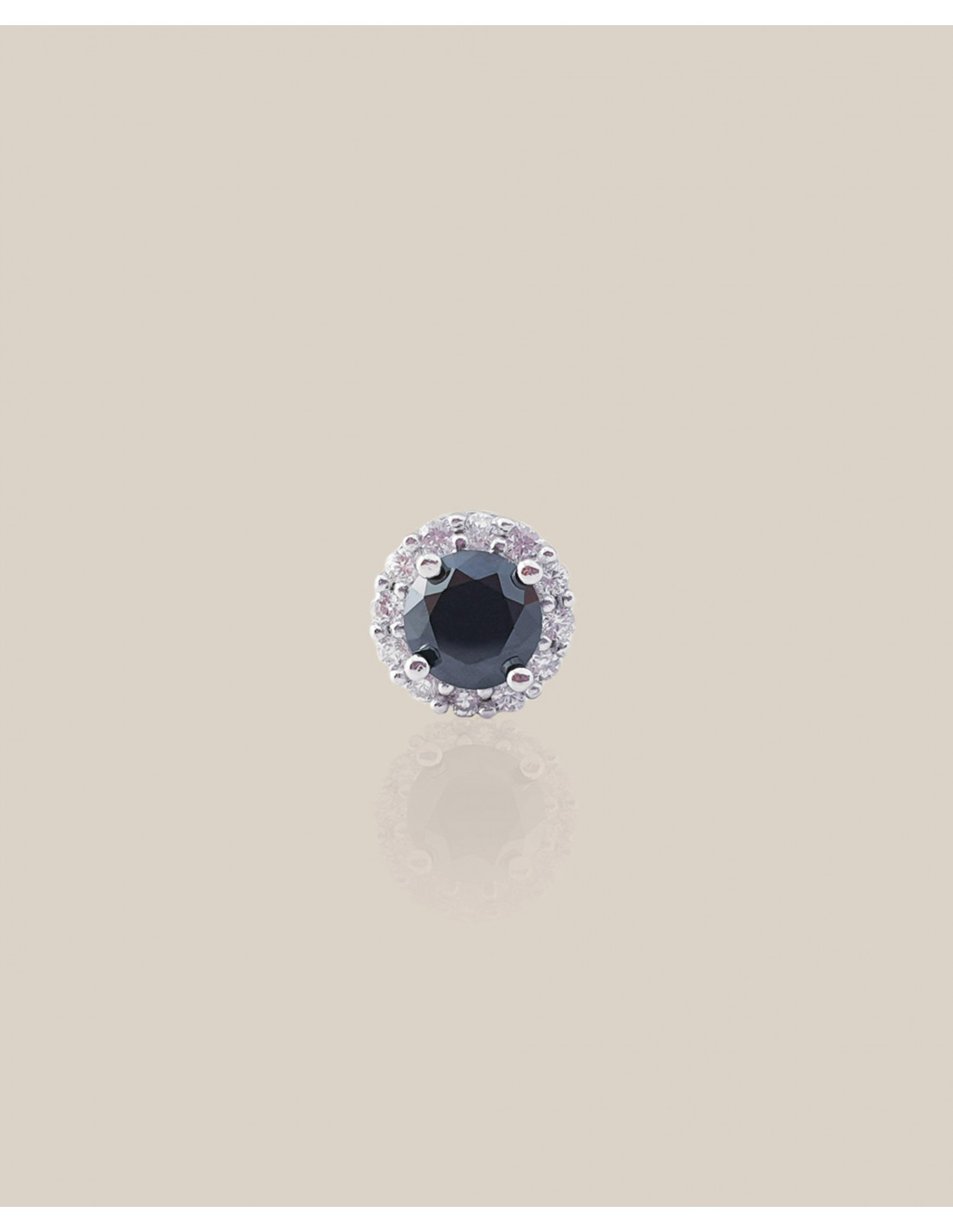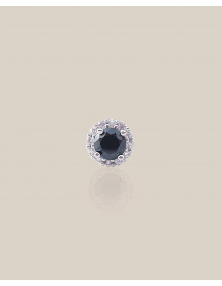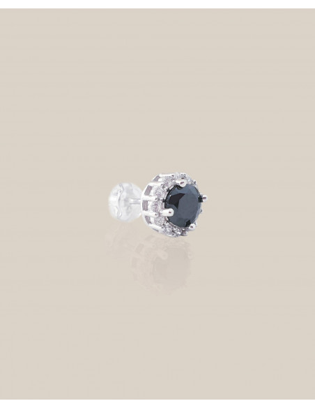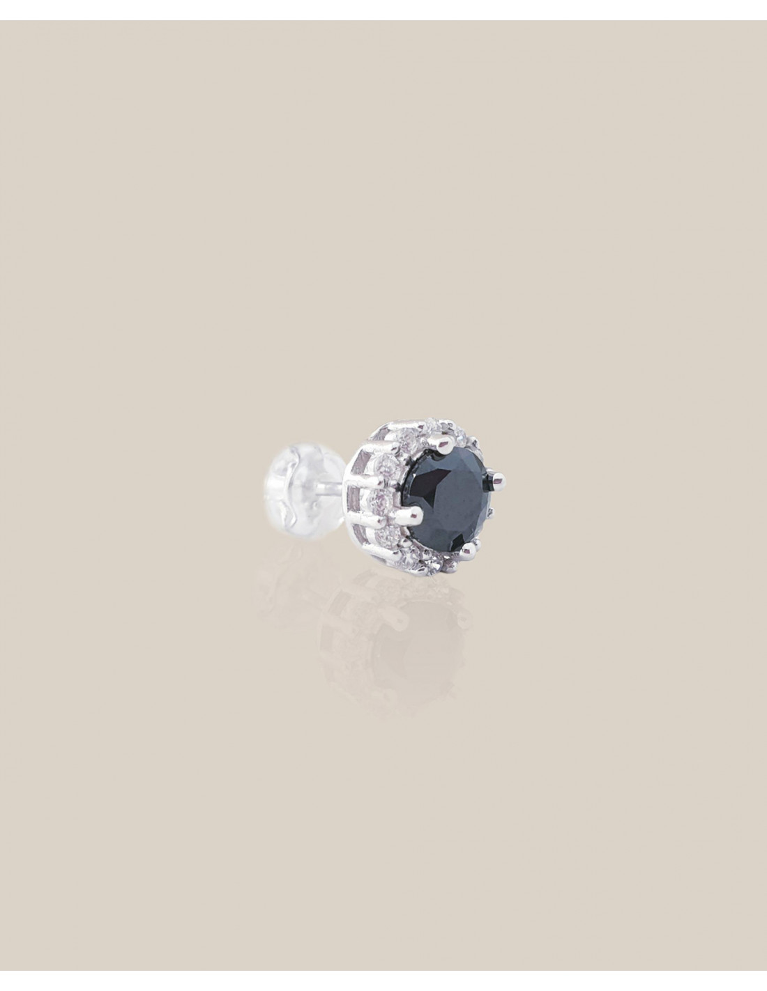 Piercing de oreja redondo en plata con brillante negro en la parte central rodeado de brillantes blancos. El complemento más atrevido del verano si lo combinas con varios pendientes del mismo color. Crea tu propio estilo en tu oreja con Cuplé. VENTA POR U