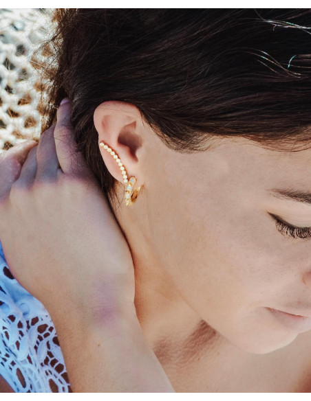 Piercing pendiente de oreja curvo. Diseño en oro con brillantes engarzados alrededor. Valiente y atrevido. VENTA POR UNIDAD