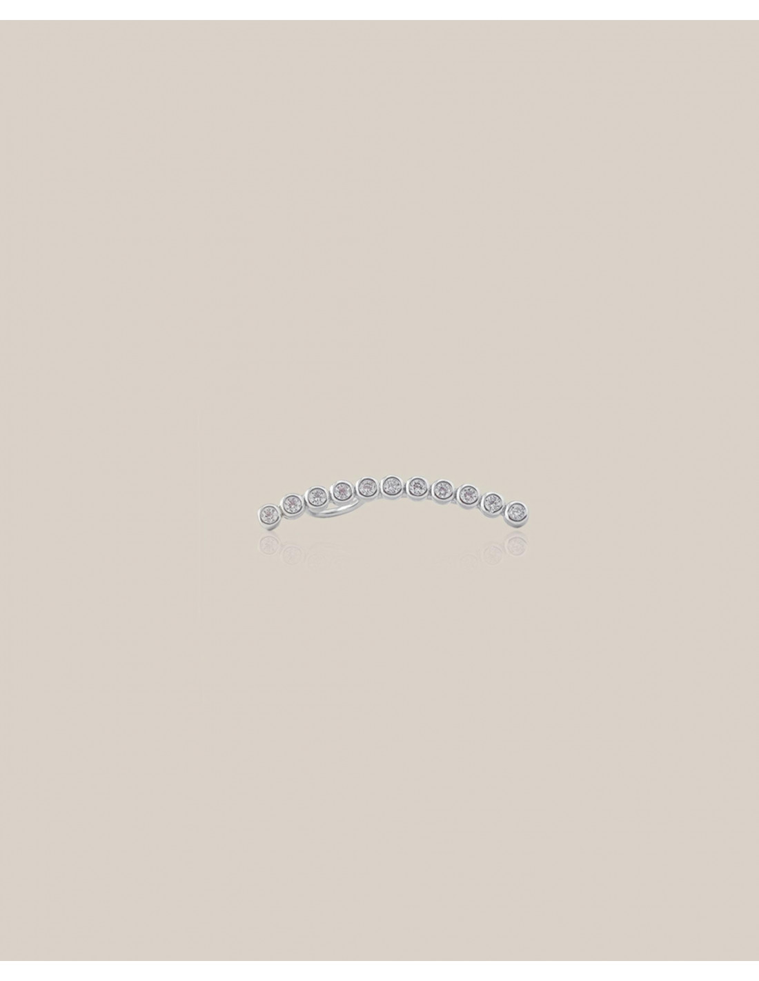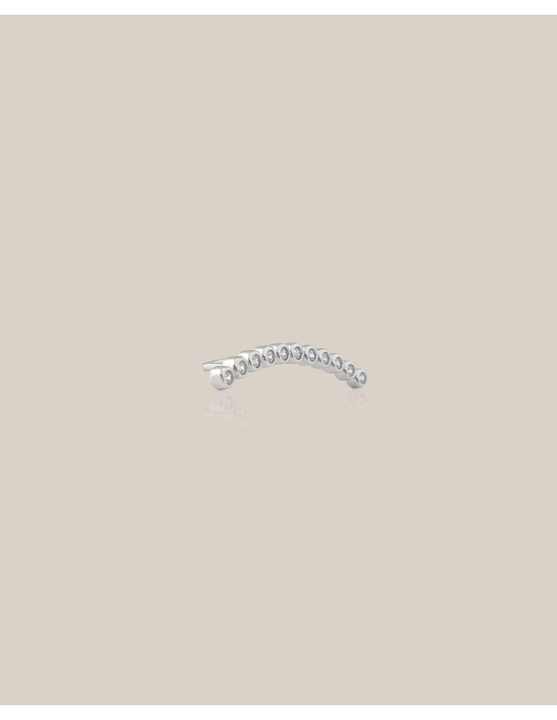 Piercing de oreja en color plata con ligera corvatura. Decorado con brillantes blancos que le dan un toque luminoso ideal para el verano. VENTA POR UNIDAD