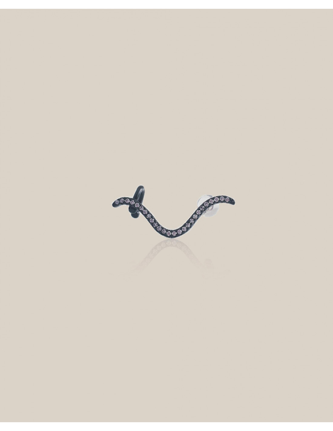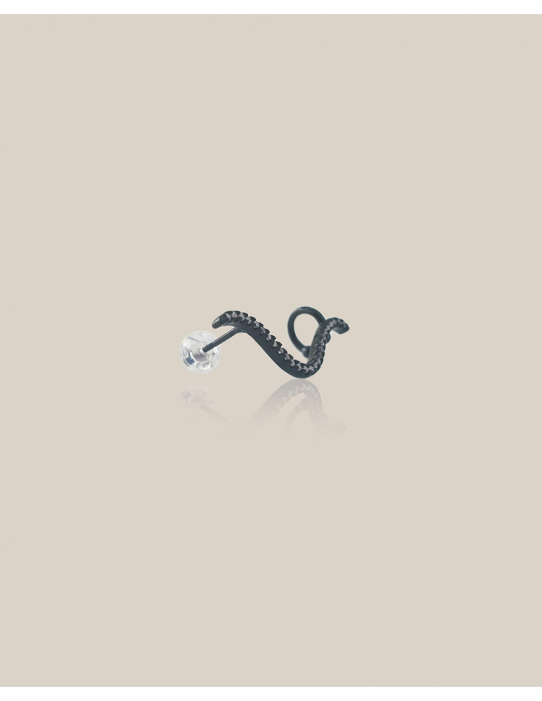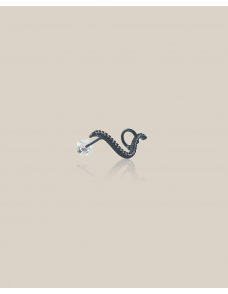 Piercing para oreja con forma ondulante. El color negro y las pequeñas incrustaciones brillantes le dan un toque elegante y exclusivo. VENTA POR UNIDAD