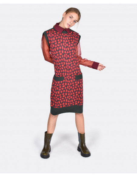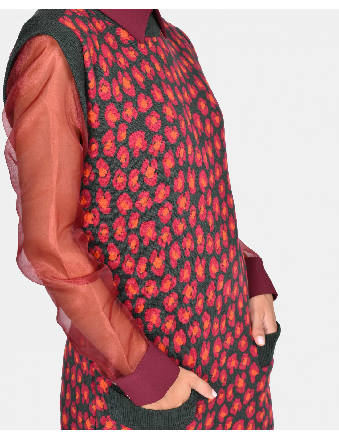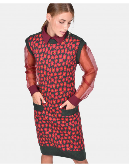 VESTIDO PUNTO ESTAMPADO LEOPARDO PUNTO VERDE BOTELLA