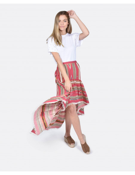 FALDA ASIMETRICA JACQUARD FUCSIA