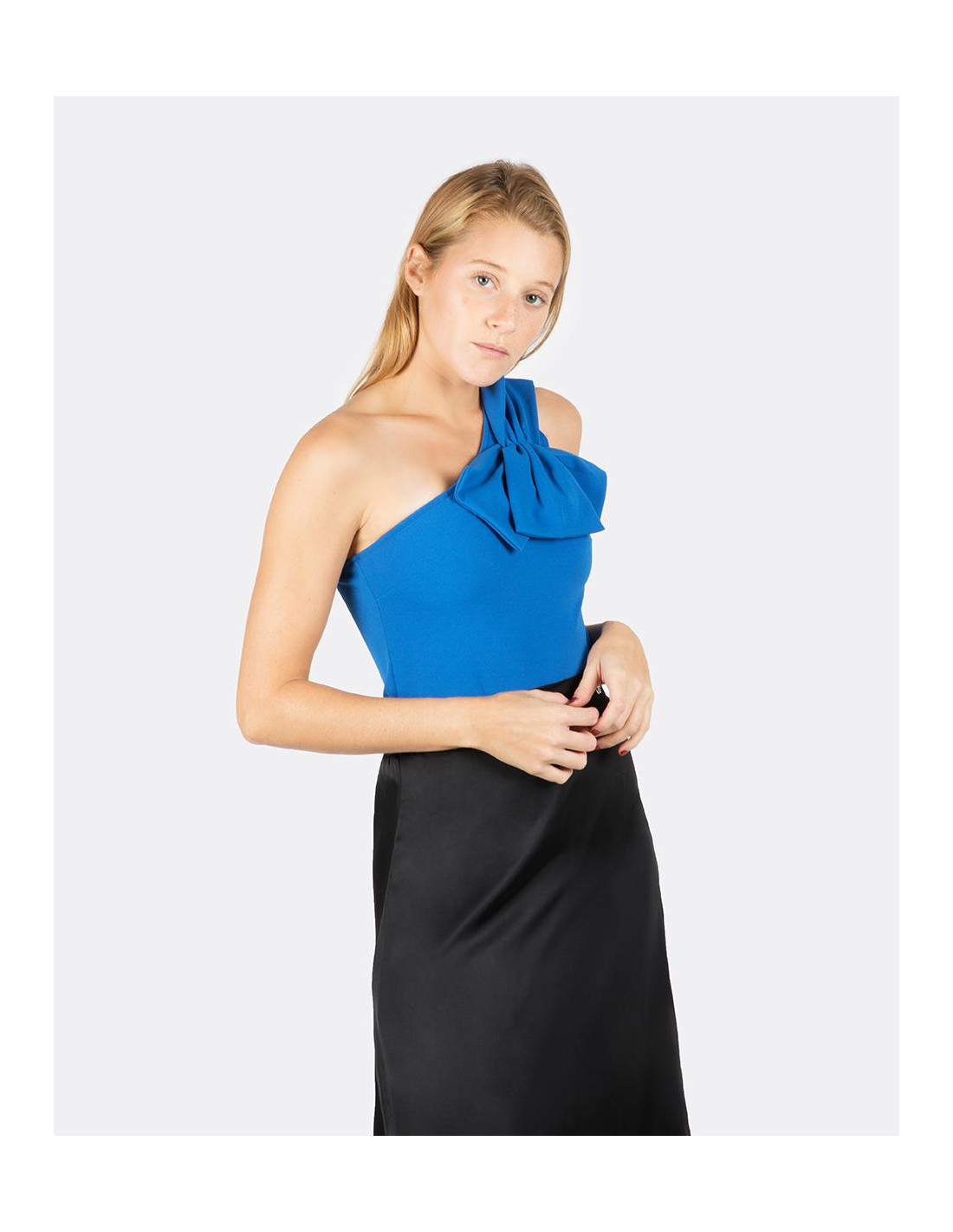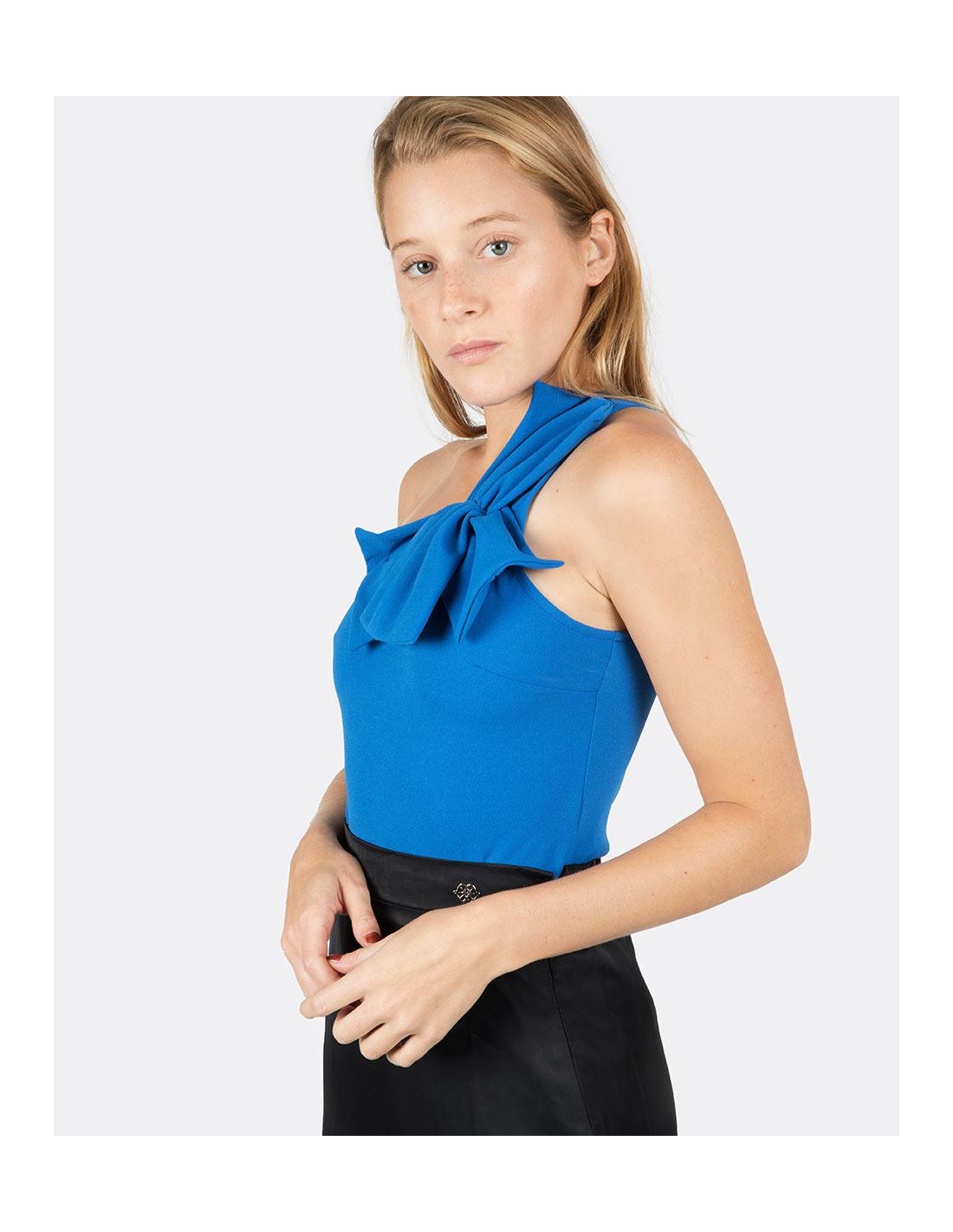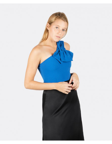Body en punto crep del color estrella de esta temporada, el azul klein. Siéntete perfecta combinándolo con unos pantalones de vestir y tus tacones favoritos.