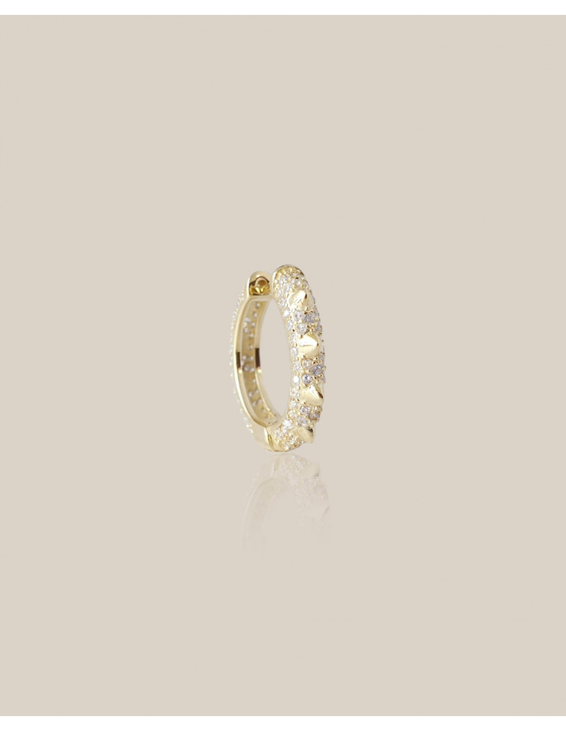 92,5% Plata. 7,5% latón. Bañado en oro de 18k. No contiene niquel. Hipoalergénico.