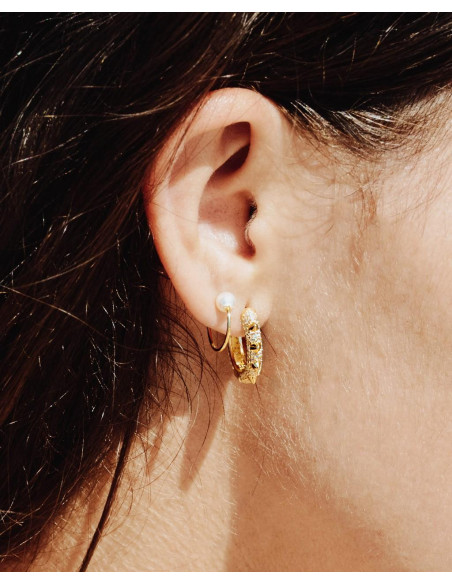 Diseñado en color oro, este piercing para oreja en forma de aro es un complemento ideal para lucir con otros accesorios. VENTA POR UNIDAD