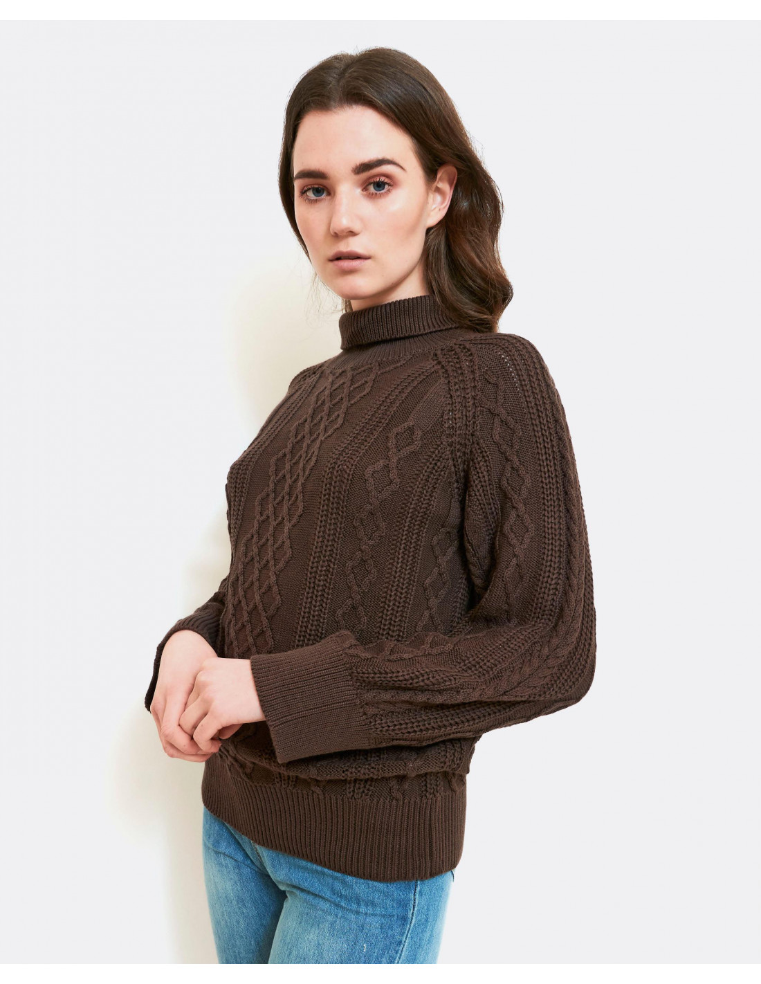 JERSEY BASIC TRENZAS PUNTO TRICOT MARRON