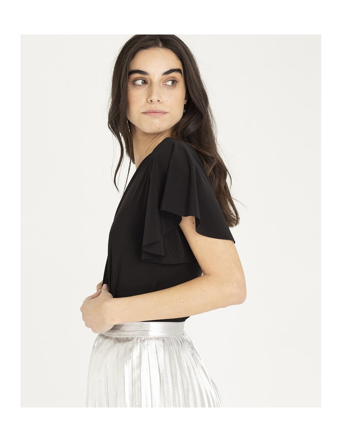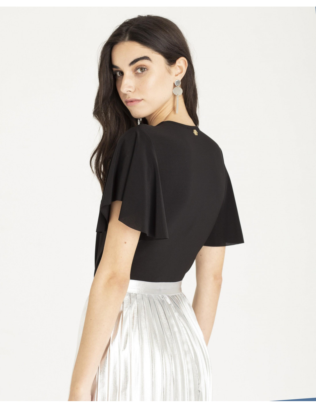 BODY MANGA VOLERO PUNTO CIRCULAR NEGRO