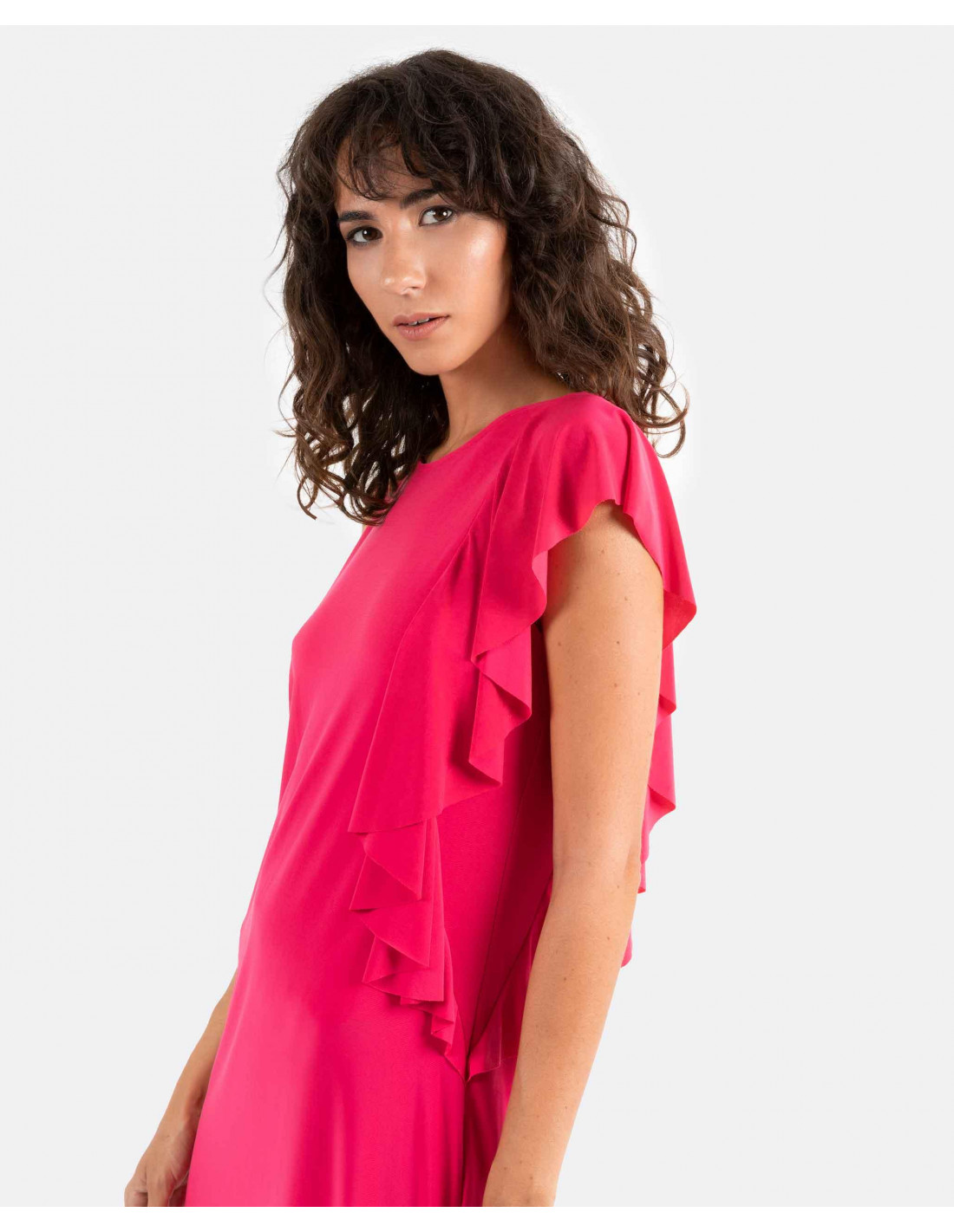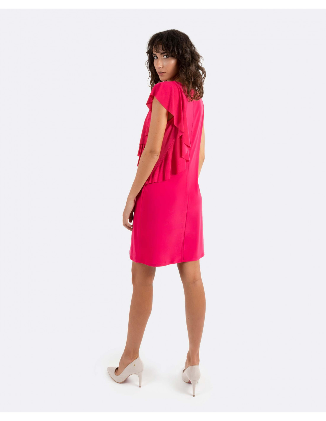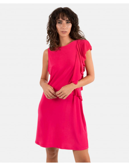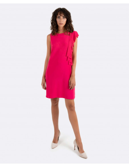 VESTIDO VOLANTES PUNTO CIRCULAR FUCSIA
