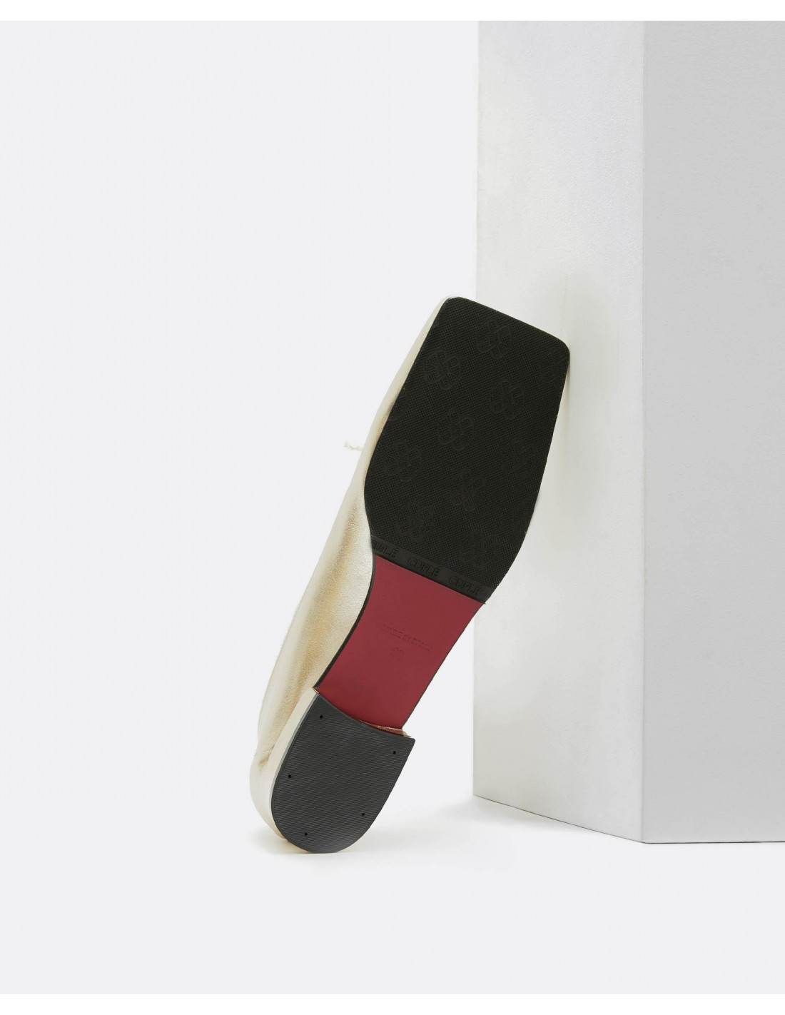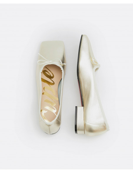 Las bailarinas están de moda y para poder ir a la última son perfectas estas de punta cuadrada y color platino, para darle un toque atrevido a un diseño clásico.