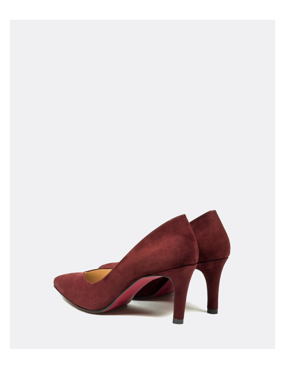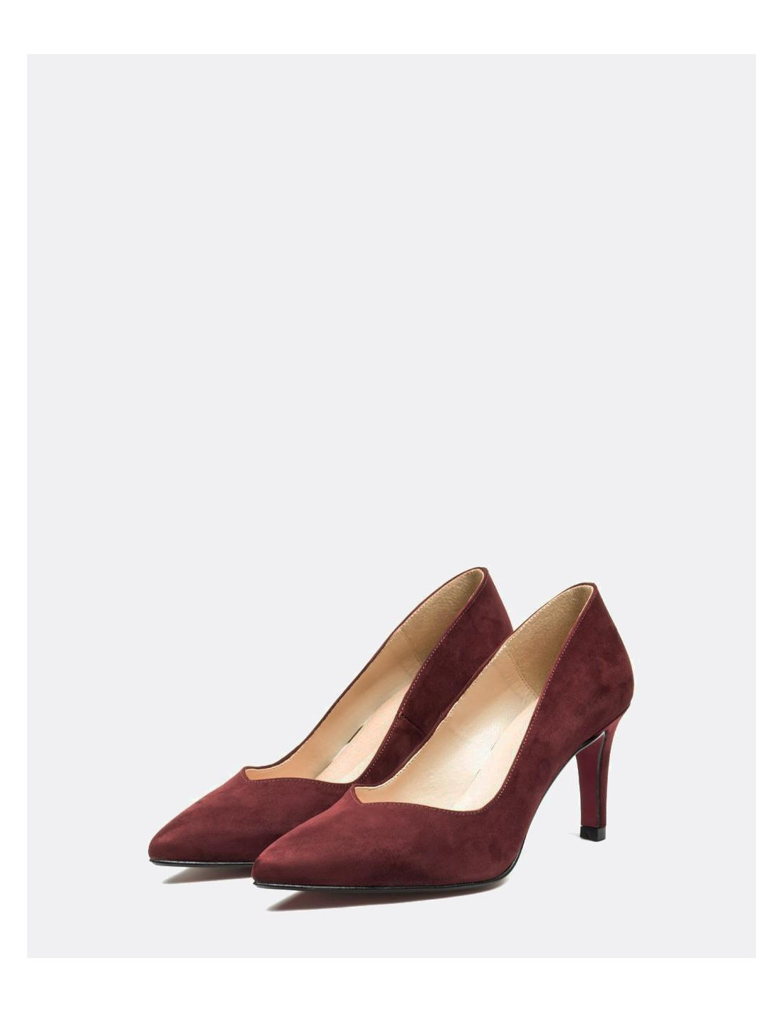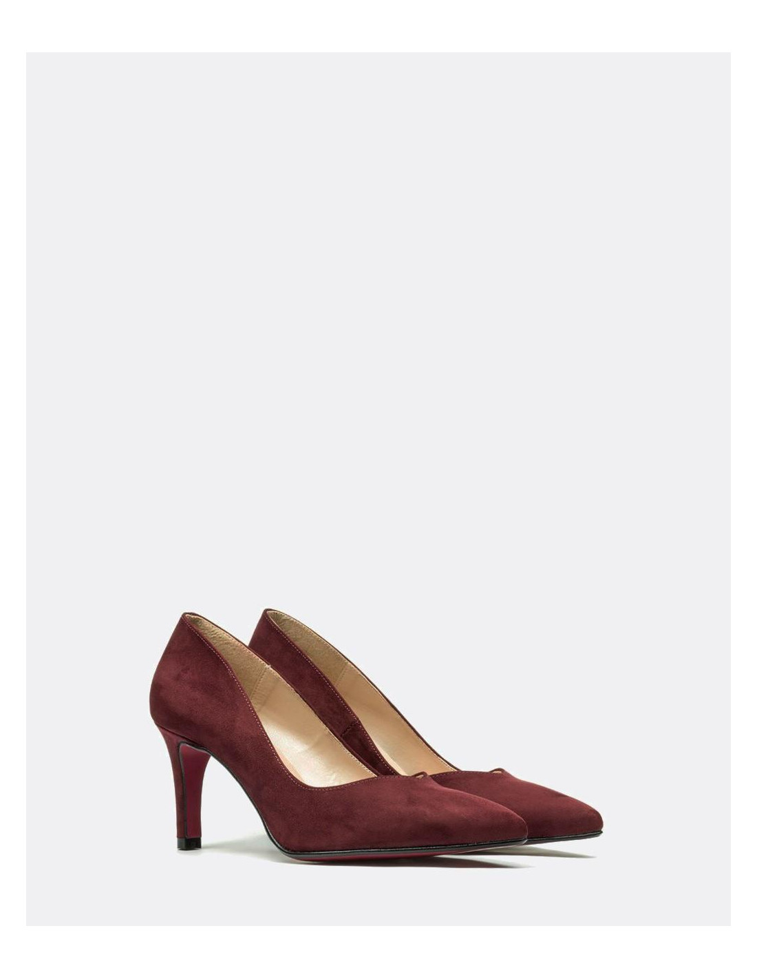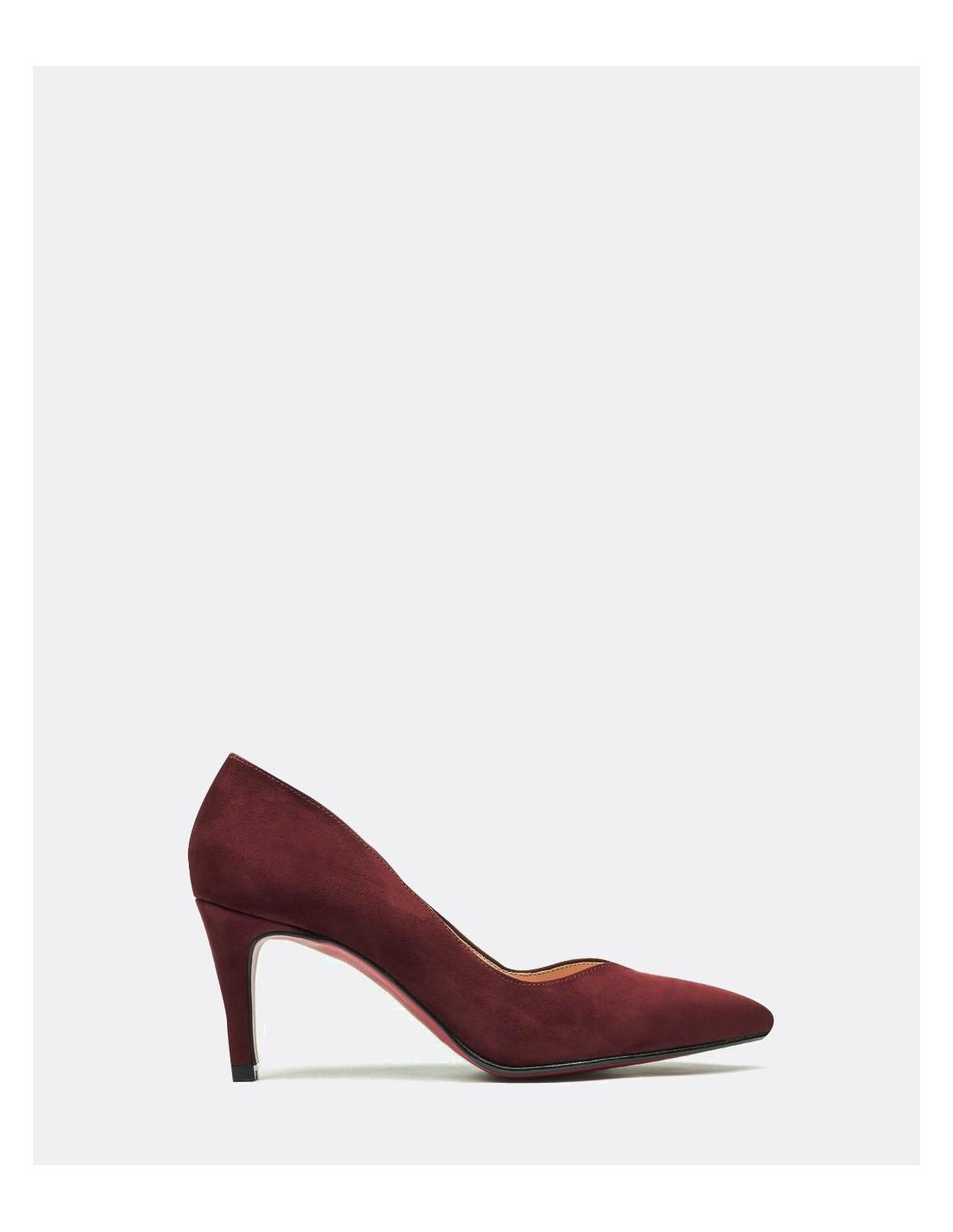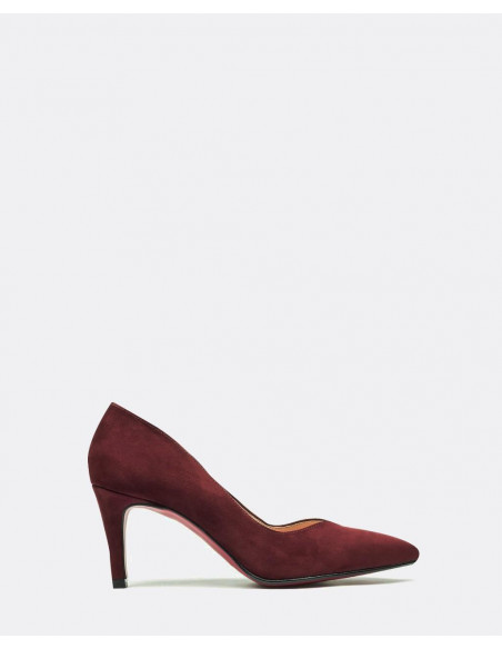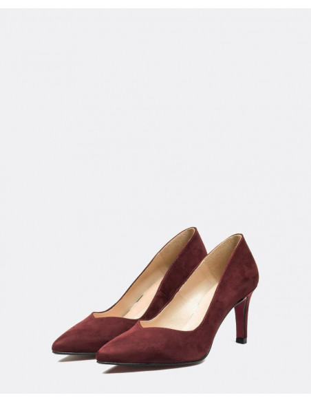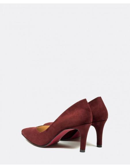 Salón de pico con tacón alto de material de ultrasuede en color burdeos. El color y la textura son ideales para tus looks diarios.