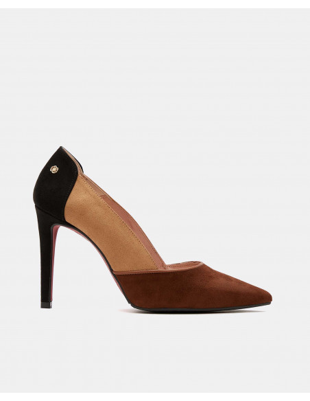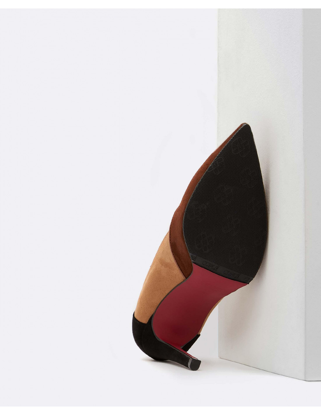 Salón de tacón fino en color visón. Un básico imprescindible esta temporada. Fabricado en ultrasuede de color visón. Interior forrado en piel. Detalle de logo de Cuplé. Fabricado en España. Perfectos para tu look de fiesta.